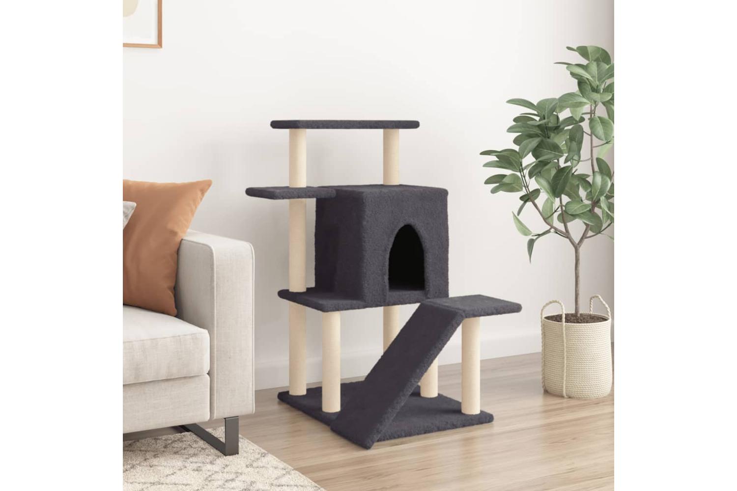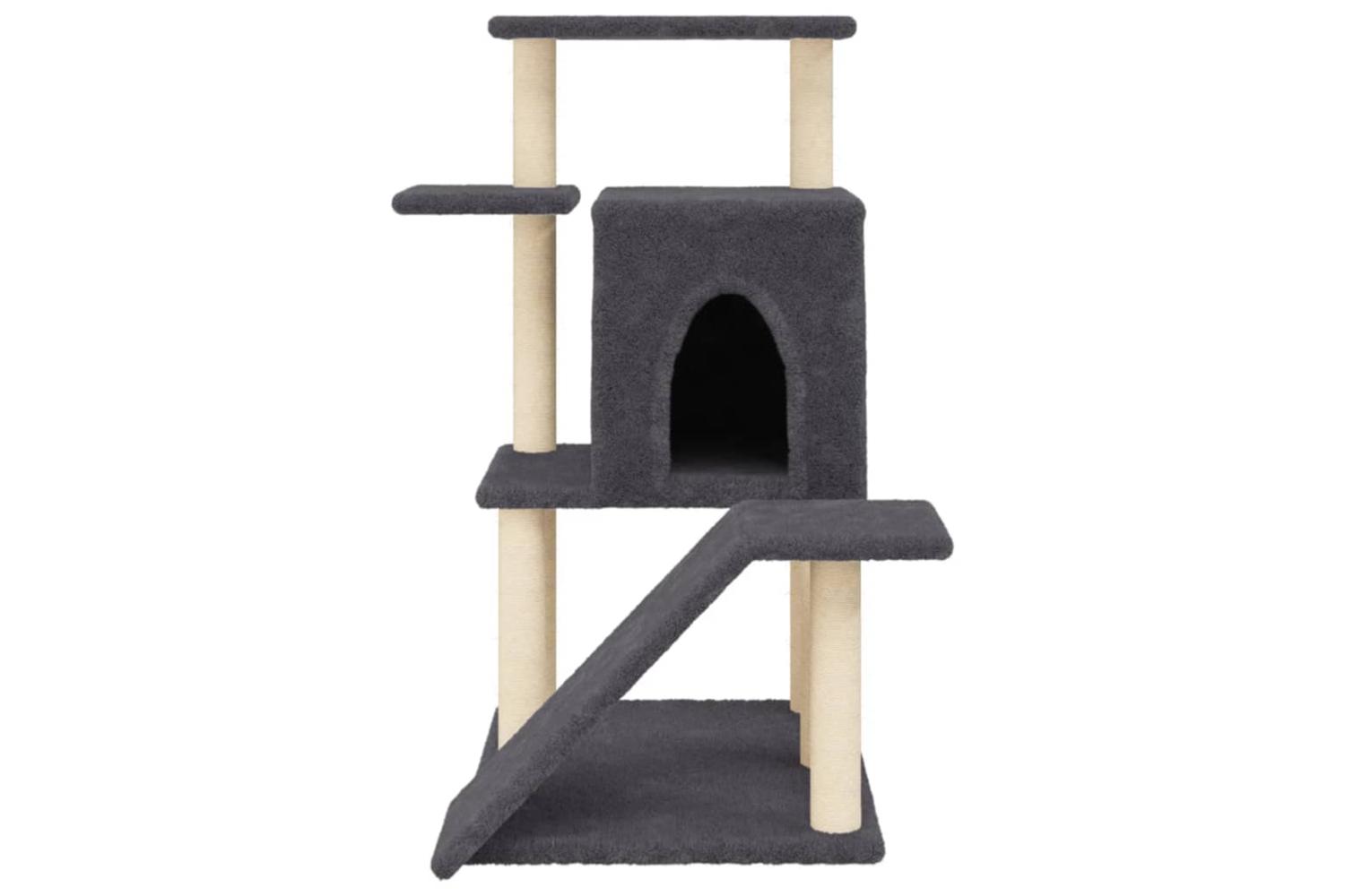 - Natural sisal posts: The resilient and strong natural sisal posts of the cat scratching tree are perfect for your beloved cats to satisfy their scratching instinct and prevent them from scratching your furniture.