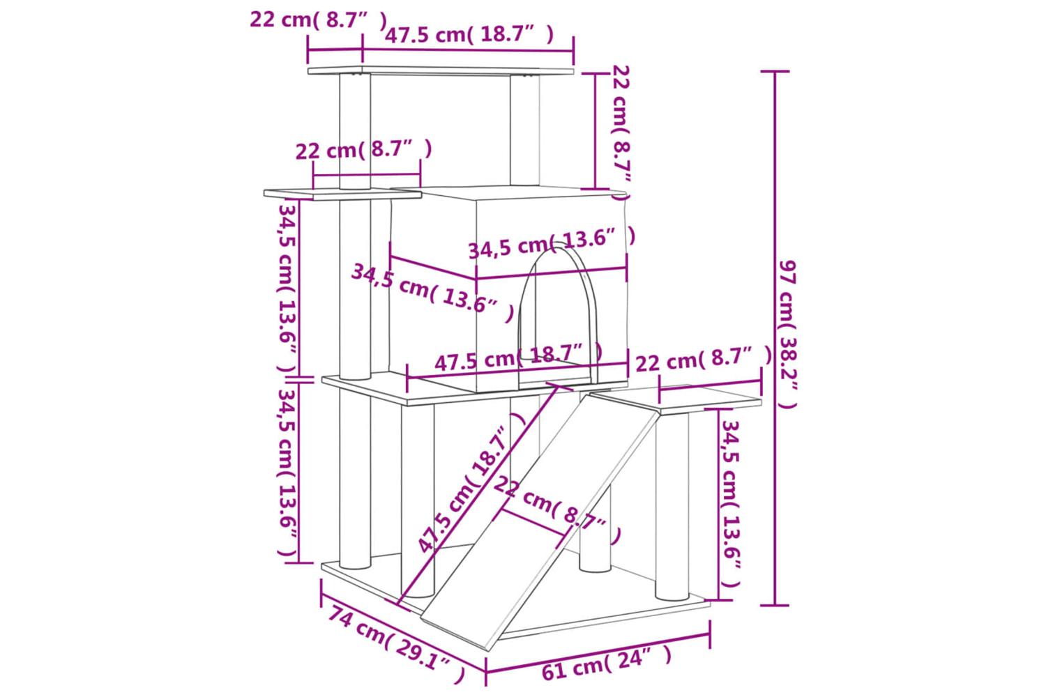 - All-in-one cat tower: The multi-level cat furniture is designed with a house, a ladder and platforms, providing a perfect place for your cats to climb, perch, scratch, hide, and also relax.