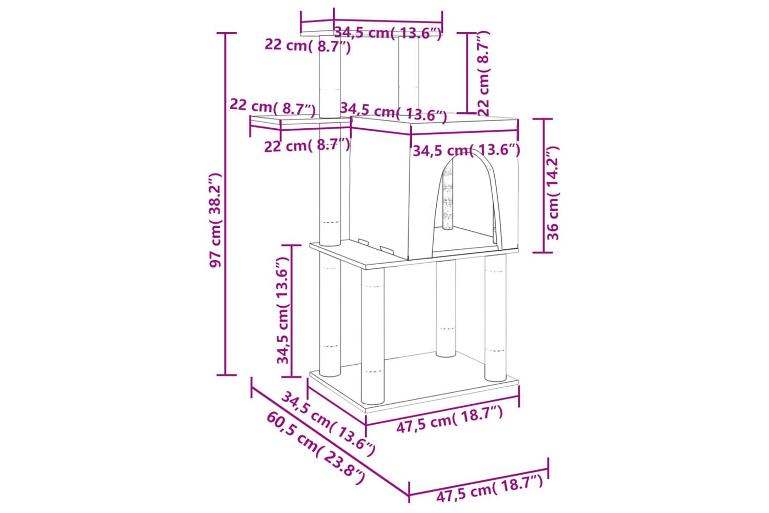 - Natural sisal posts: The resilient and strong natural sisal posts of the cat scratching tree are perfect for your beloved cats to satisfy their scratching instinct and prevent them from scratching your furniture.