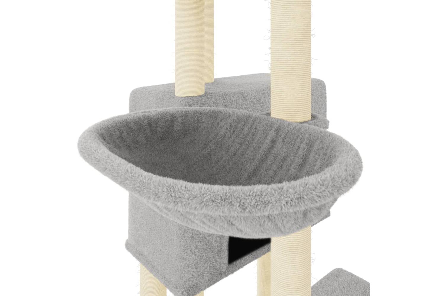 - Natural sisal posts: The resilient and strong natural sisal posts of the cat scratching tree are perfect for your beloved cats to satisfy their scratching instinct and prevent them from scratching your furniture.