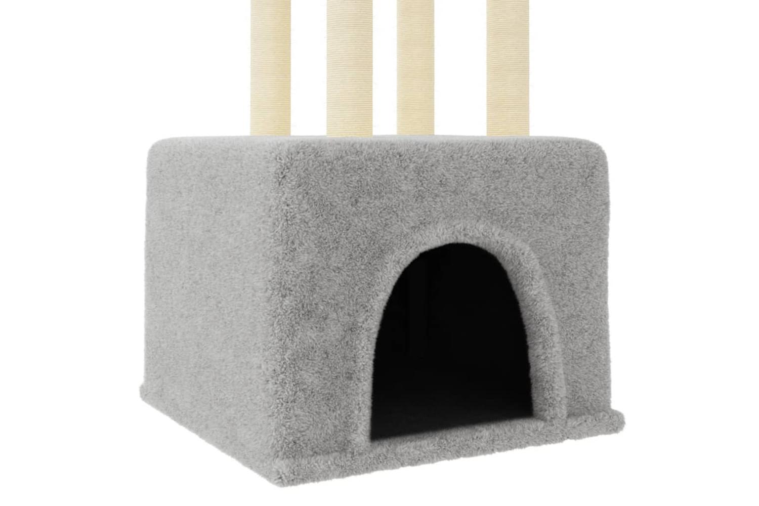 - Natural sisal posts: The resilient and strong natural sisal posts of the cat scratching tree are perfect for your beloved cats to satisfy their scratching instinct and prevent them from scratching your furniture.