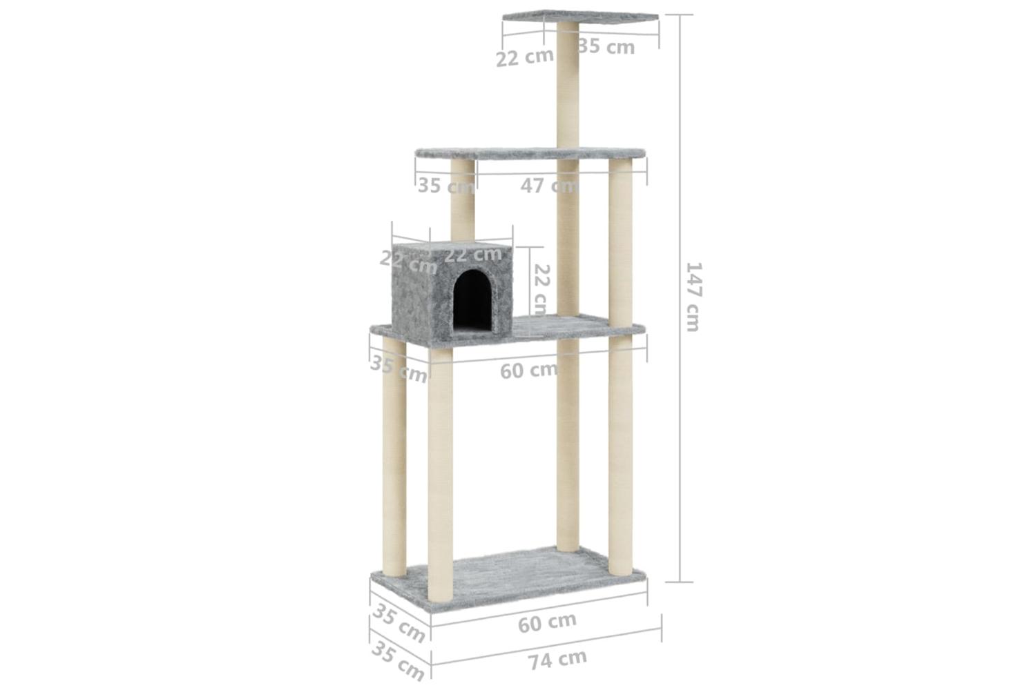 Your furry friends can sharpen their claws on the scratching posts wrapped in sisal rope, which provides a healthy outlet for their scratching instincts. Additionally, they will also rejoice in chasing after each other while jumping up and down this fun play centre. When they've enjoyed enough playtime, your little friends will love resting on the upper platforms where they have a better view. Besides, they can also hide in the cosy house to take a nap, or take a load off on the comfortable plush seat.