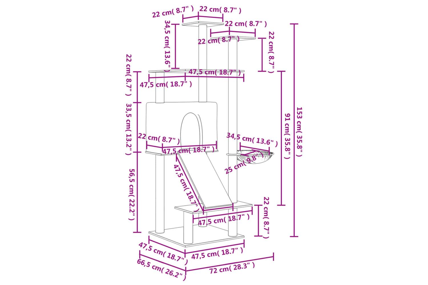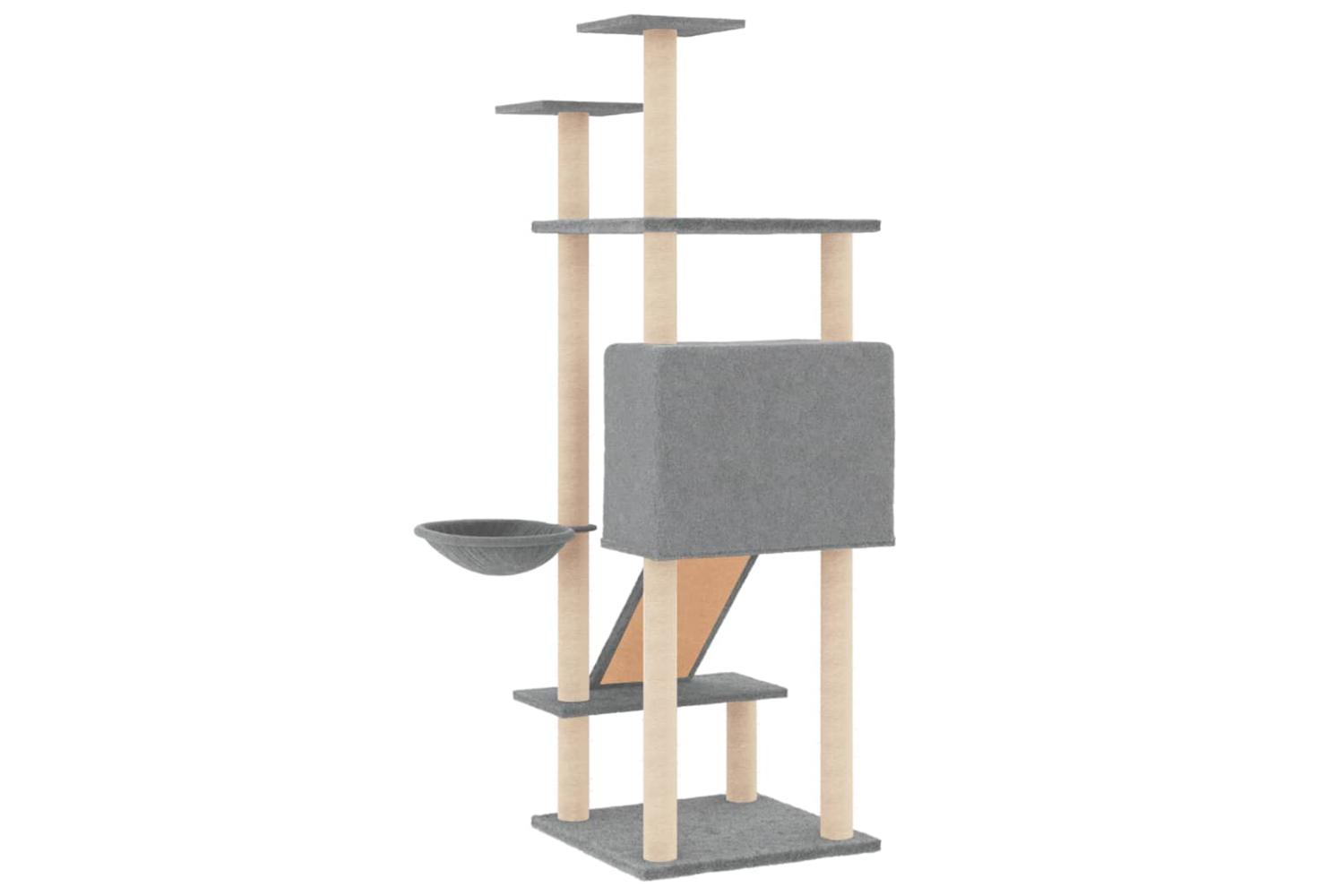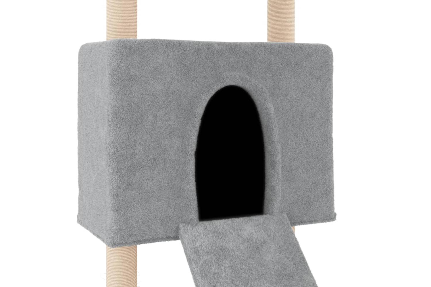 - Natural sisal posts: The resilient and strong natural sisal posts of the cat scratching tree are perfect for your beloved cats to satisfy their scratching instinct and prevent them from scratching your furniture.