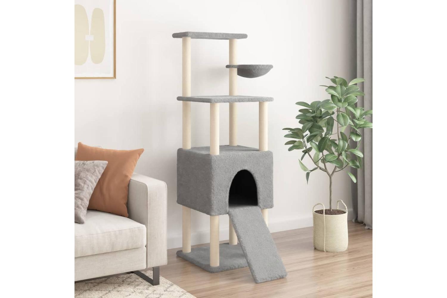 - Natural sisal posts: The resilient and strong natural sisal posts of the cat scratching tree are perfect for your beloved cats to satisfy their scratching instinct and prevent them from scratching your furniture.