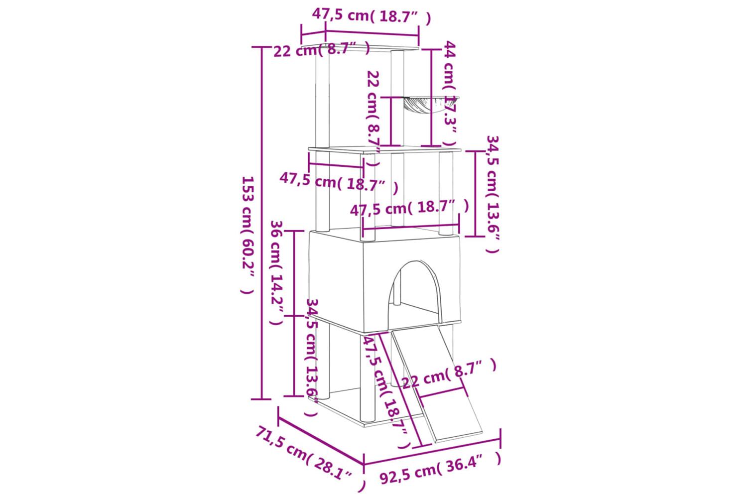 - All-in-one cat tower: The multi-level cat furniture is designed with a house, a ladder, a basket and platforms, providing a perfect place for your cats to climb, perch, scratch, hide, and also relax.