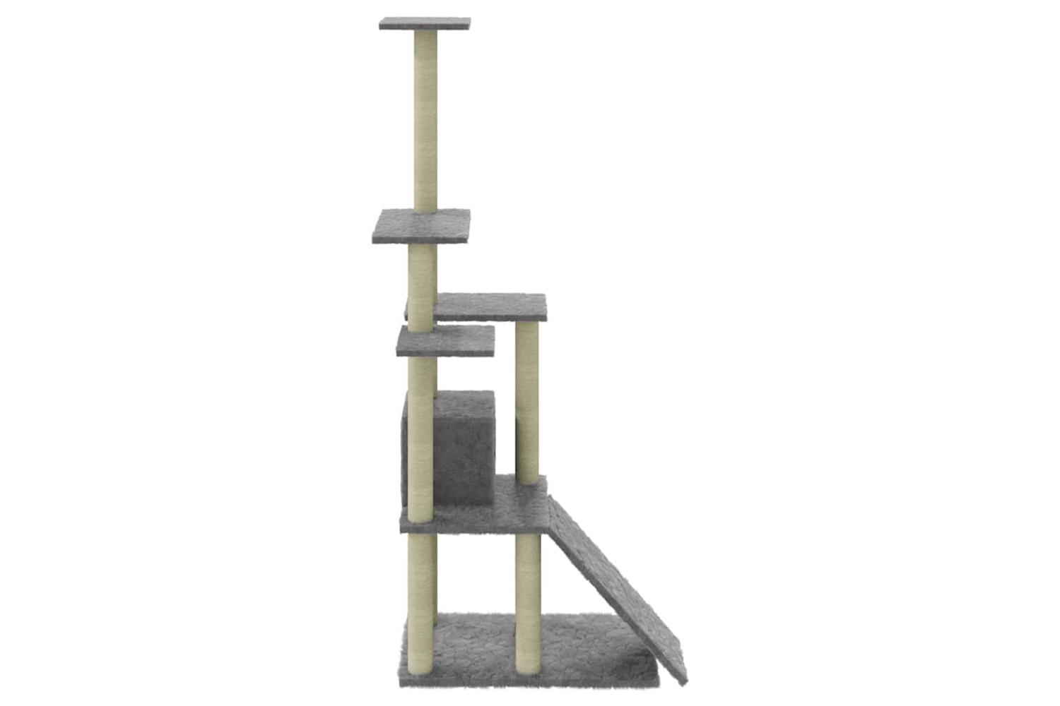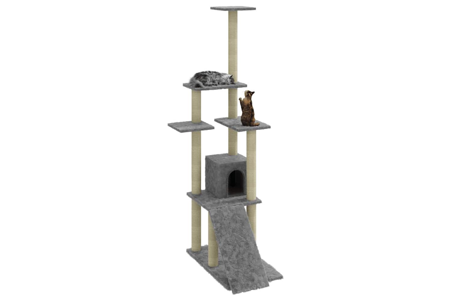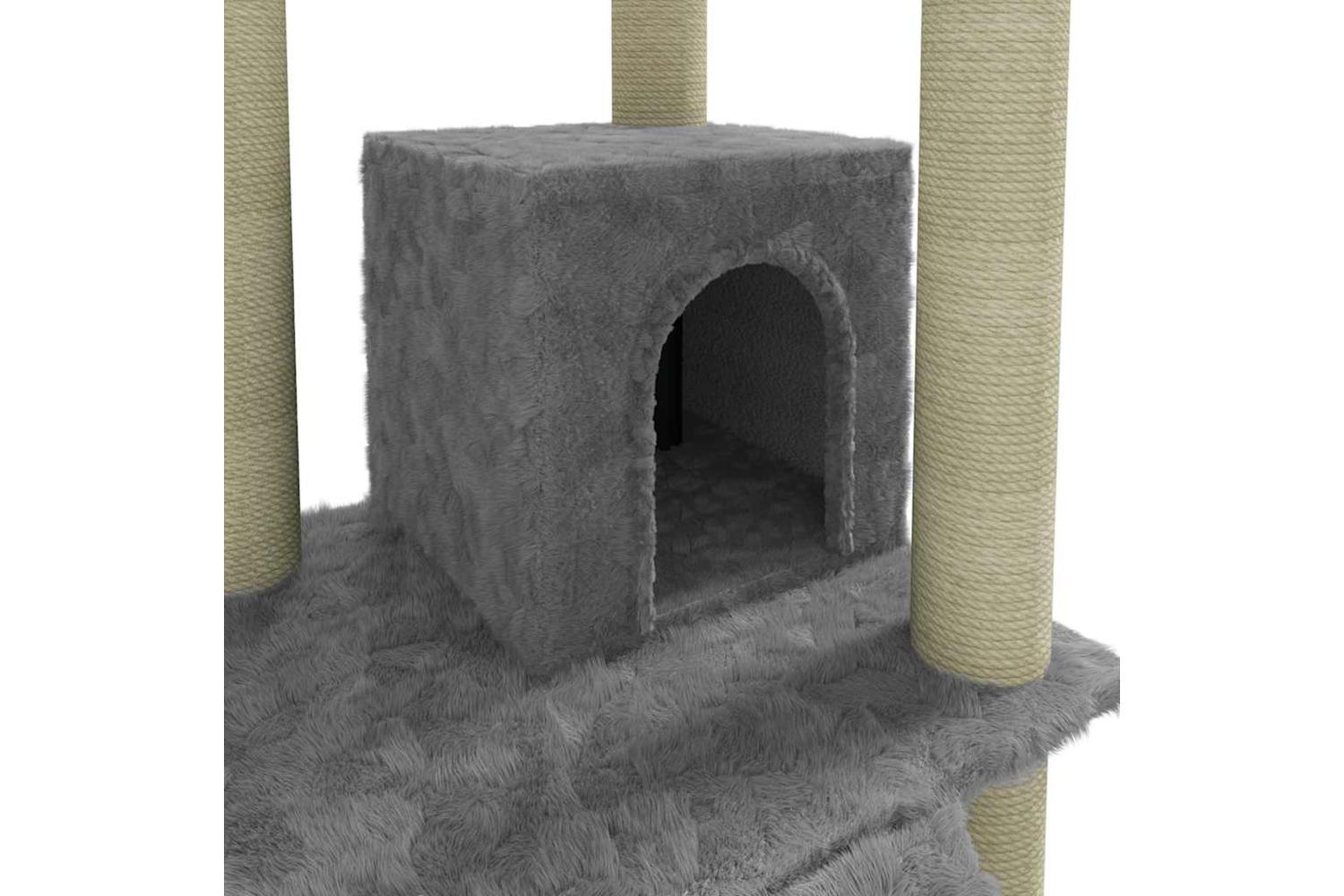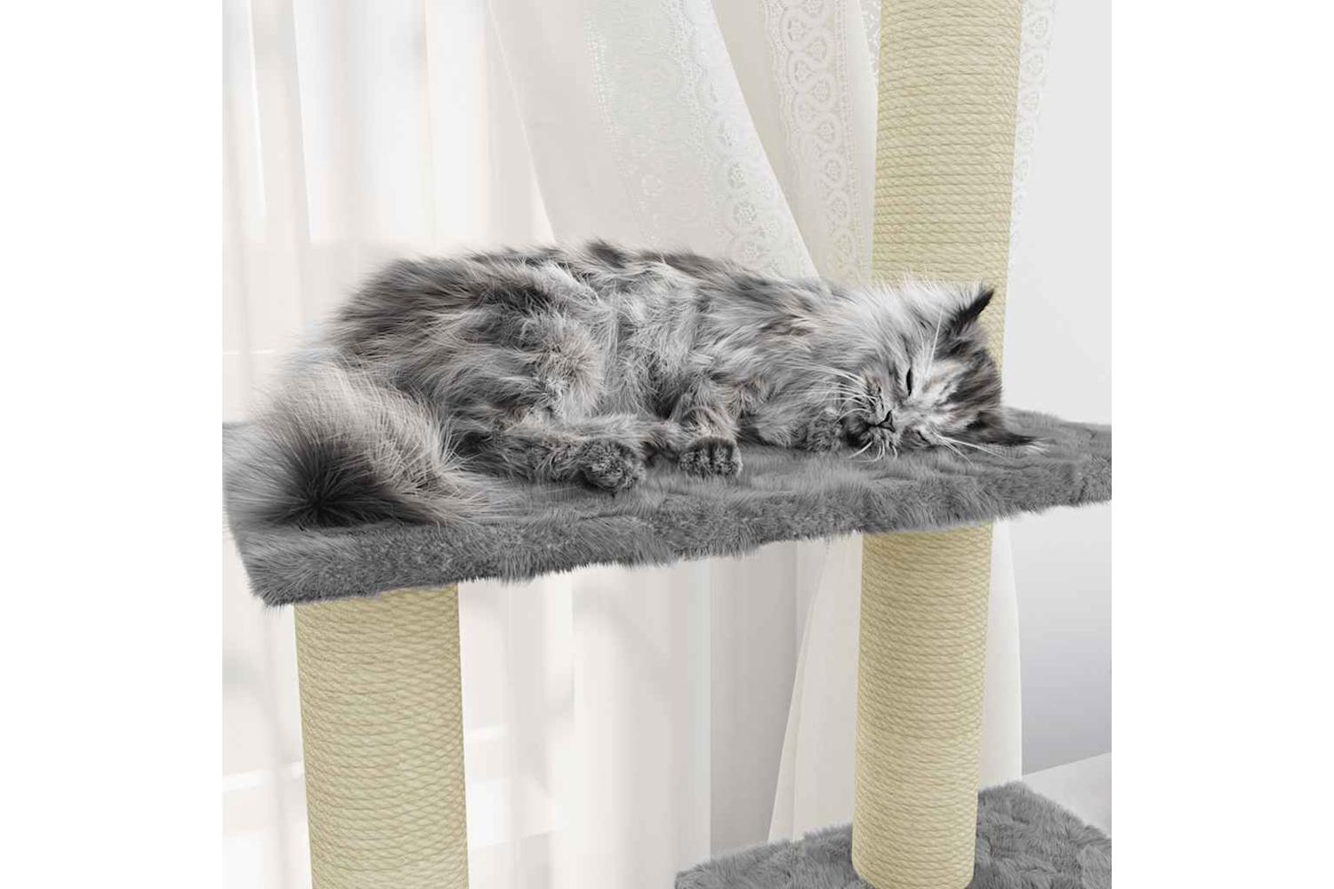 Your furry friends can sharpen their claws on the scratching posts wrapped in sisal rope, which provides a healthy outlet for their scratching instincts. Additionally, they will also rejoice in chasing after each other while jumping up and down this fun play centre. When they've enjoyed enough playtime, your little friends will love resting on the upper platforms where they have a better view. Besides, they can also hide in the cosy house to take a nap, or take a load off on the comfortable plush seat. There is also a ramp at the bottom for them to climb.