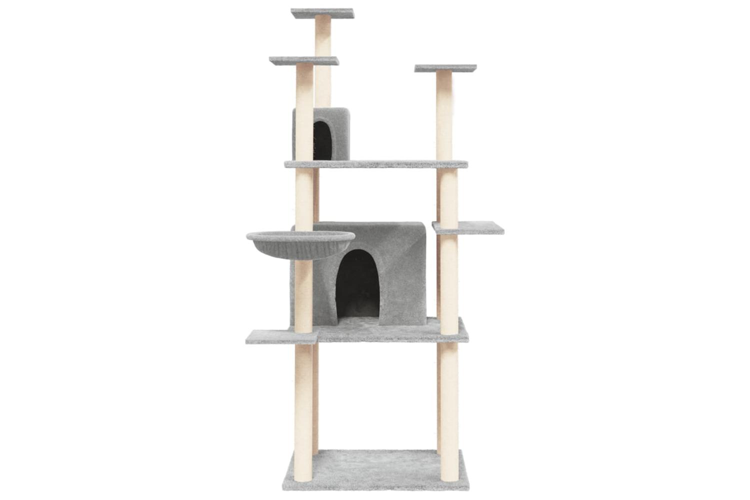 - Natural sisal posts: The resilient and strong natural sisal posts of the cat scratching tree are perfect for your beloved cats to satisfy their scratching instinct and prevent them from scratching your furniture.