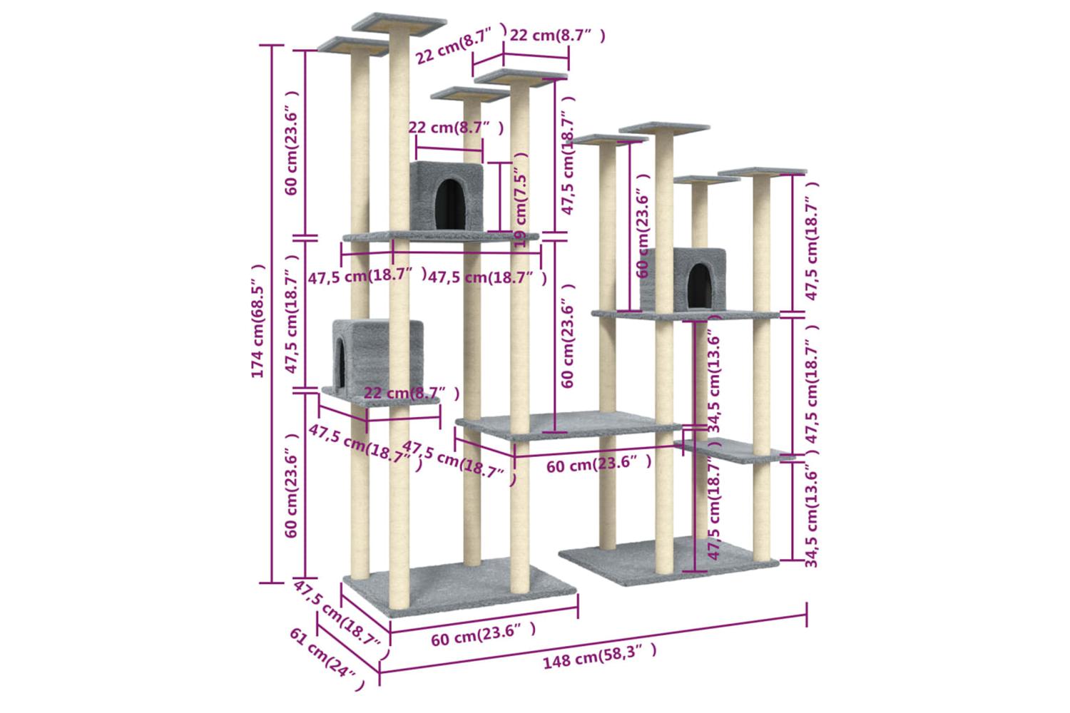 - Sisal posts: The resilient and strong natural sisal posts are perfect for your beloved cats to satisfy their scratching instinct and prevent them from scratching your furniture.