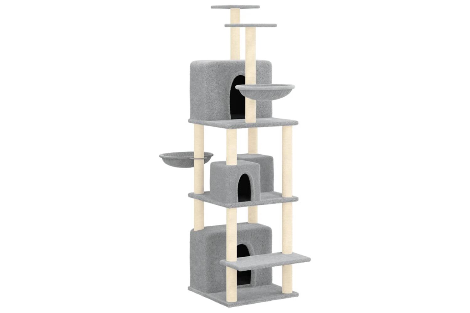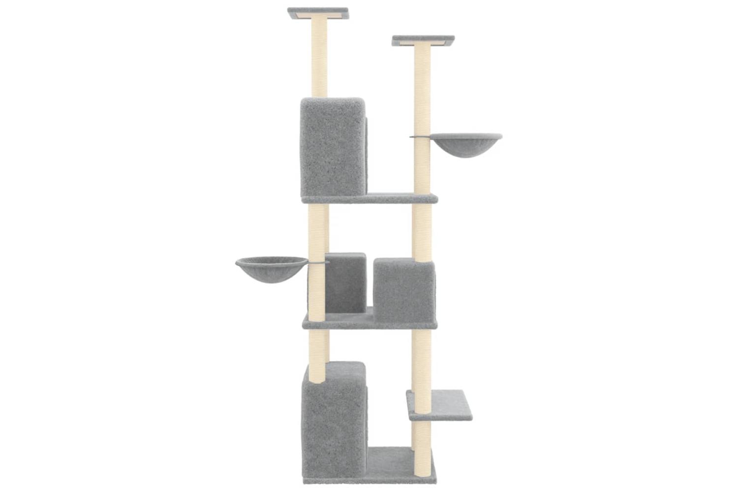- Natural sisal posts: The resilient and strong natural sisal posts of the cat scratching tree are perfect for your beloved cats to satisfy their scratching instinct and prevent them from scratching your furniture