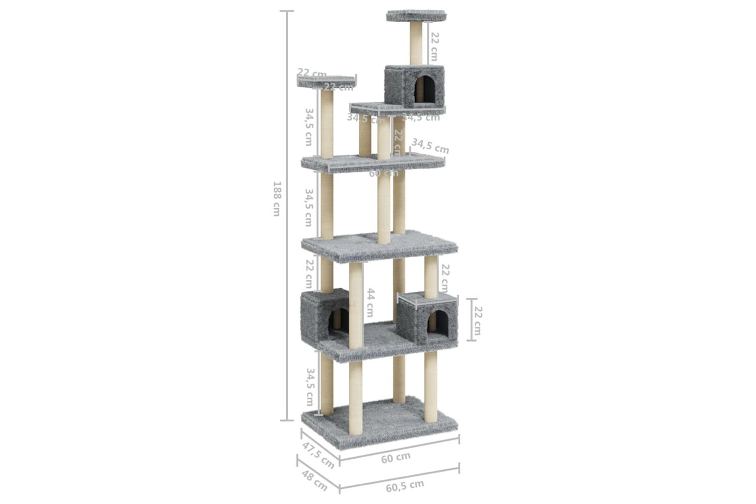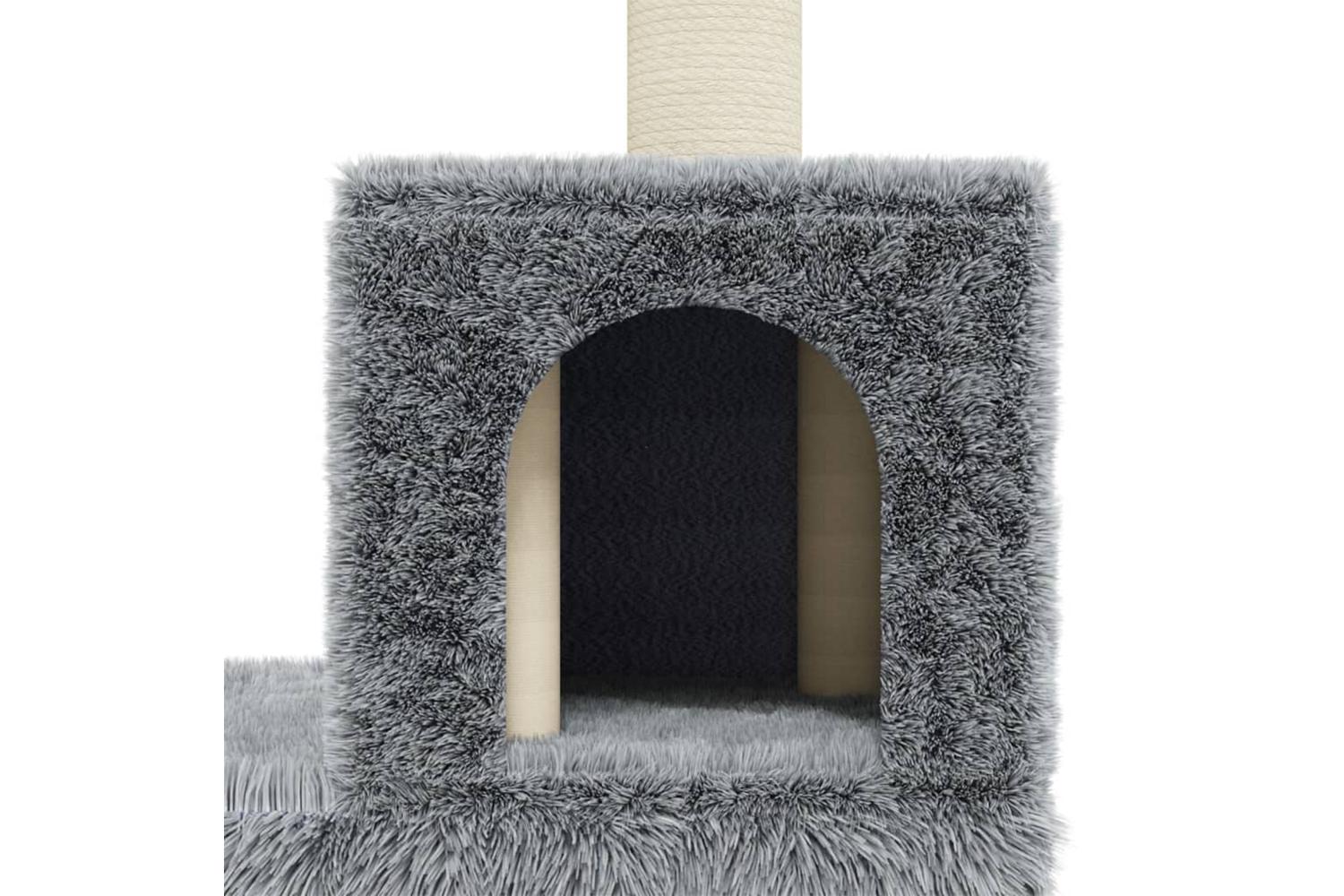 Your furry friends can sharpen their claws on the scratching posts wrapped in sisal rope, which provides a healthy outlet for their scratching instincts. Additionally, they will also rejoice in chasing after each other while jumping up and down this fun play centre. When they've enjoyed enough playtime, your little friends will love resting on the upper platforms where they have a better view. Besides, they can also hide in the cosy house to take a nap, or take a load off on the comfortable plush seat.
