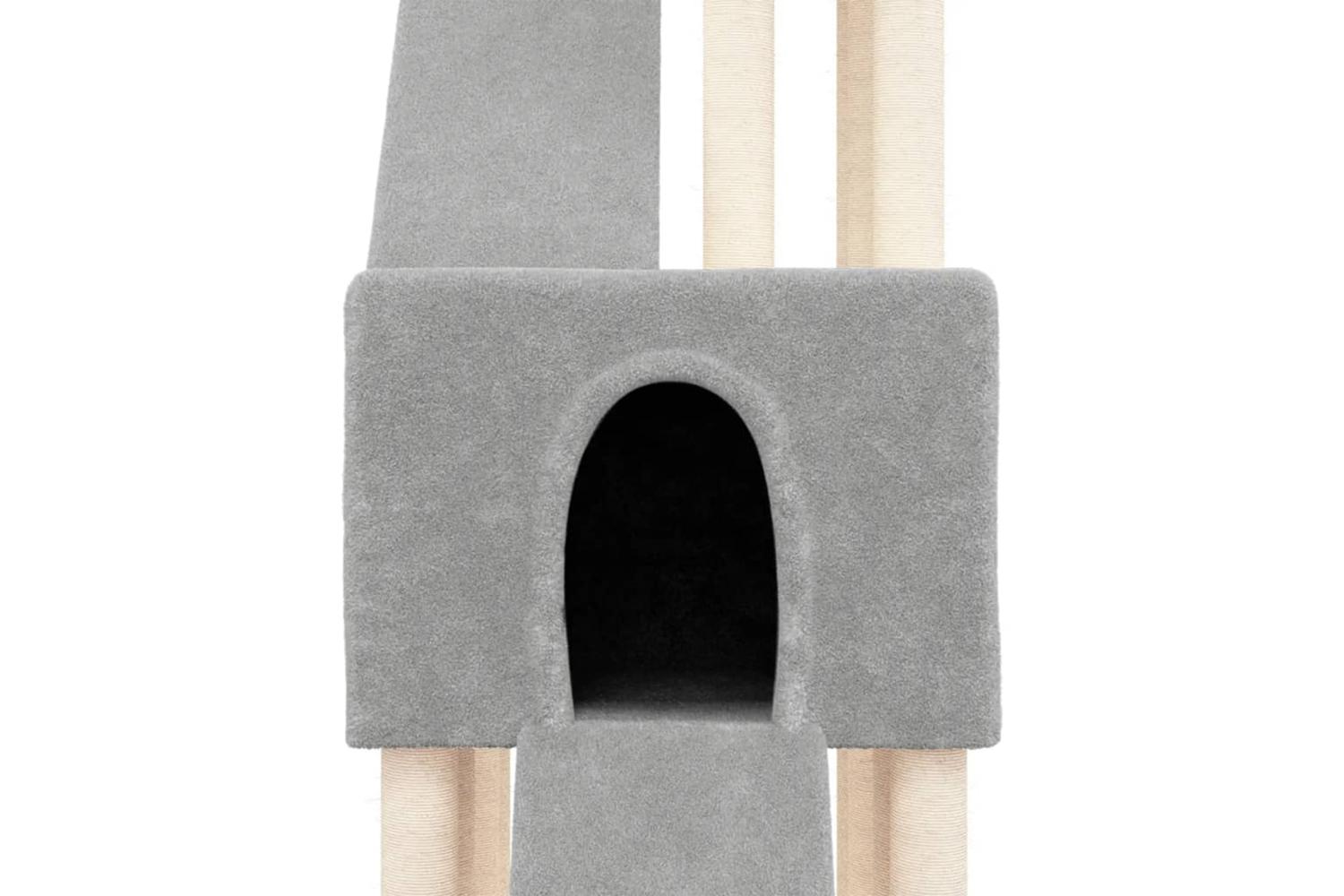 - Natural sisal posts: The resilient and strong natural sisal posts of the cat scratching tree are perfect for your beloved cats to satisfy their scratching instinct and prevent them from scratching your furniture.