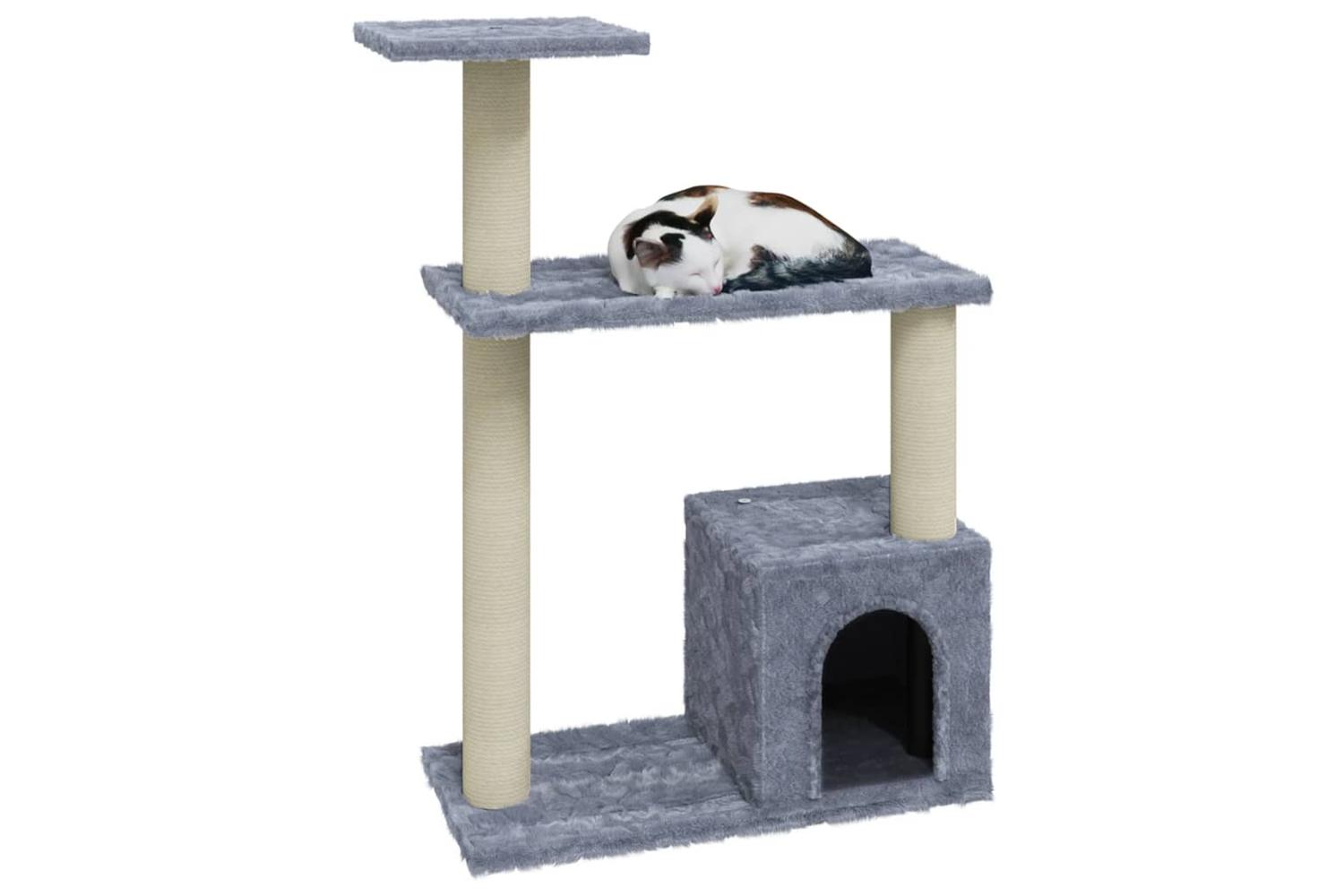 Your furry friends can sharpen their claws on the scratching posts wrapped in sisal rope, which provides a healthy outlet for their scratching instincts. Additionally, they will also rejoice in chasing after each other while jumping up and down this fun play centre. When they've enjoyed enough playtime, your little friends will love resting on the upper platforms where they have a better view. Besides, they can also hide in the cosy house to take a nap, or take a load off on the comfortable plush seat.