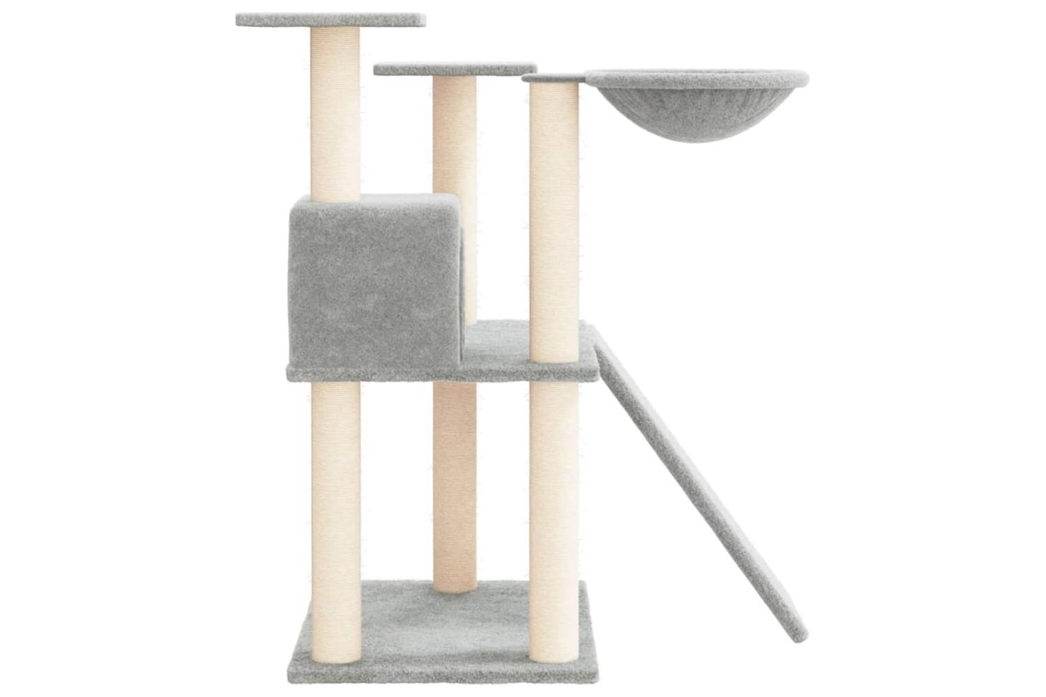 - Natural sisal posts: The resilient and strong natural sisal posts of the cat scratching tree are perfect for your beloved cats to satisfy their scratching instinct and prevent them from scratching your furniture.