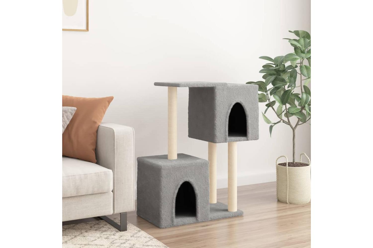 - Natural sisal posts: The resilient and strong natural sisal posts of the cat scratching tree are perfect for your beloved cats to satisfy their scratching instinct and prevent them from scratching your furniture.
