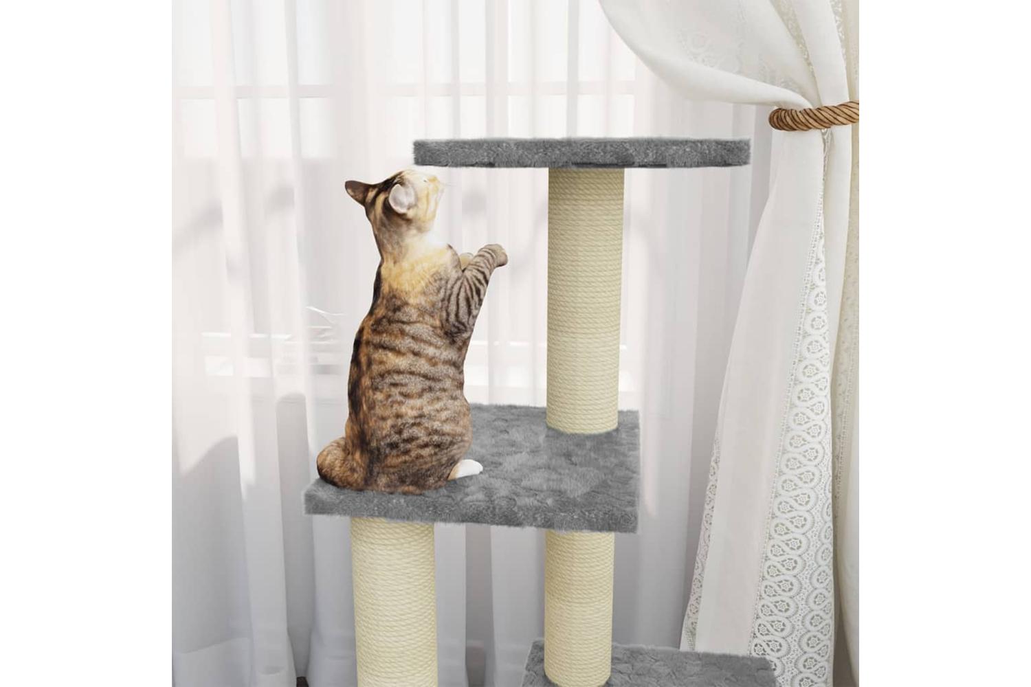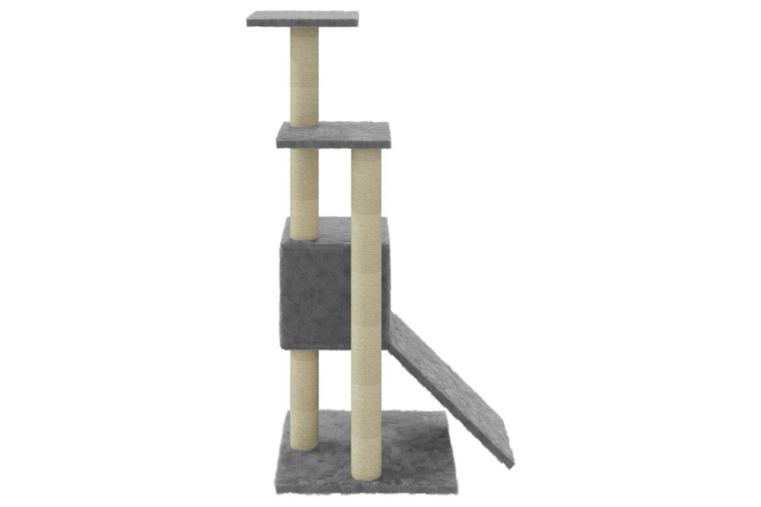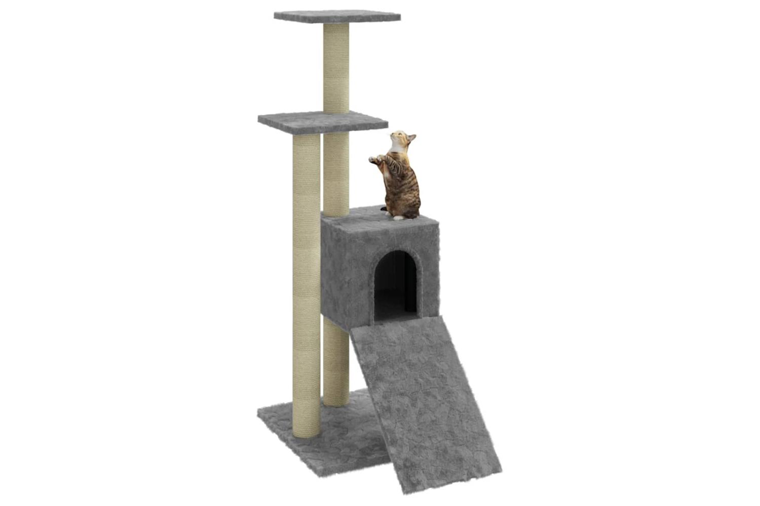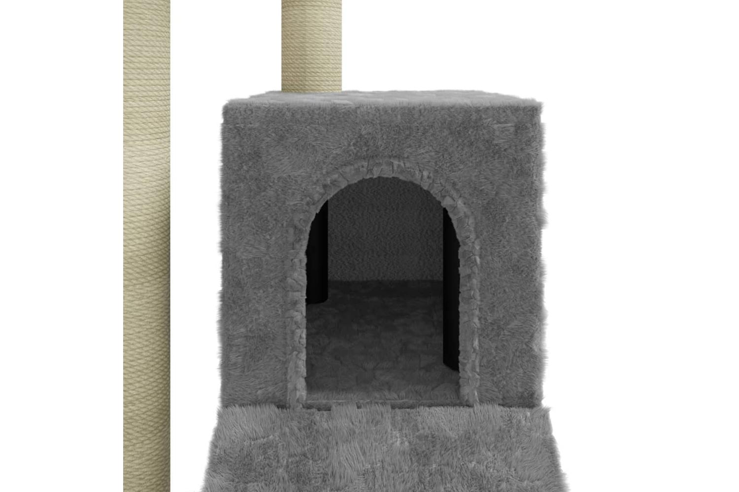 Your furry friends can sharpen their claws on the scratching posts wrapped in sisal rope, which provides a healthy outlet for their scratching instincts. Additionally, they will also rejoice in chasing after each other while jumping up and down this fun play centre. When they've enjoyed enough playtime, your little friends will love resting on the upper platforms where they have a better view. Besides, they can also hide in the cosy house to take a nap, or take a load off on the comfortable plush seat. There is also a ramp at the bottom for them to climb.