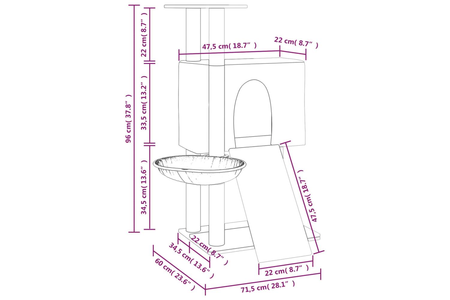 - Dimensions: 71.5 x 60 x 96 cm (L x W x H)