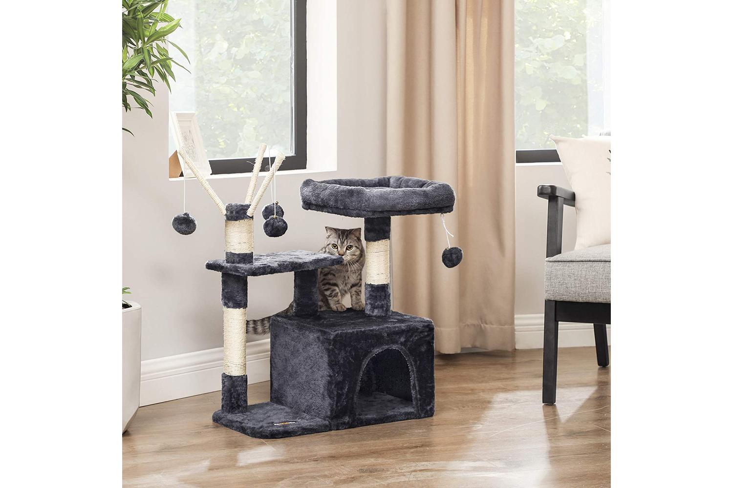 Now you can leave home without worry. The FEANDREA PCT210G01 gives your cats an enhanced play experience. Provide comfort in your absence with this luxurious cat tree and scratch post. Your pets will love you for it!