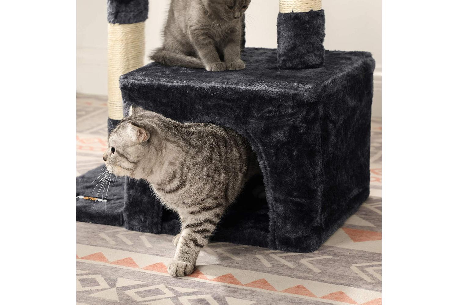 When your cat companion needs a break from play, the plush-covered cat cave or the cosy perch offer two irresistible resting options. These comfy spots are perfect for catnapping or for simply surveying their kingdom. With a staircase-like multi-level design, this tree is effortless to climb regardless of your cat's age or size.