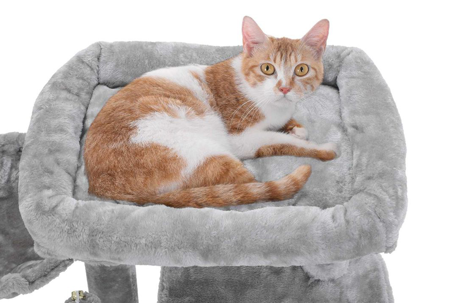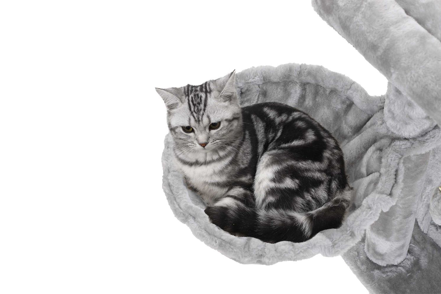 "Meow...I like the round corners of this cat tree. When I rub against this tree, I won't get hurt, and when we play hide and seek, neither will you. "