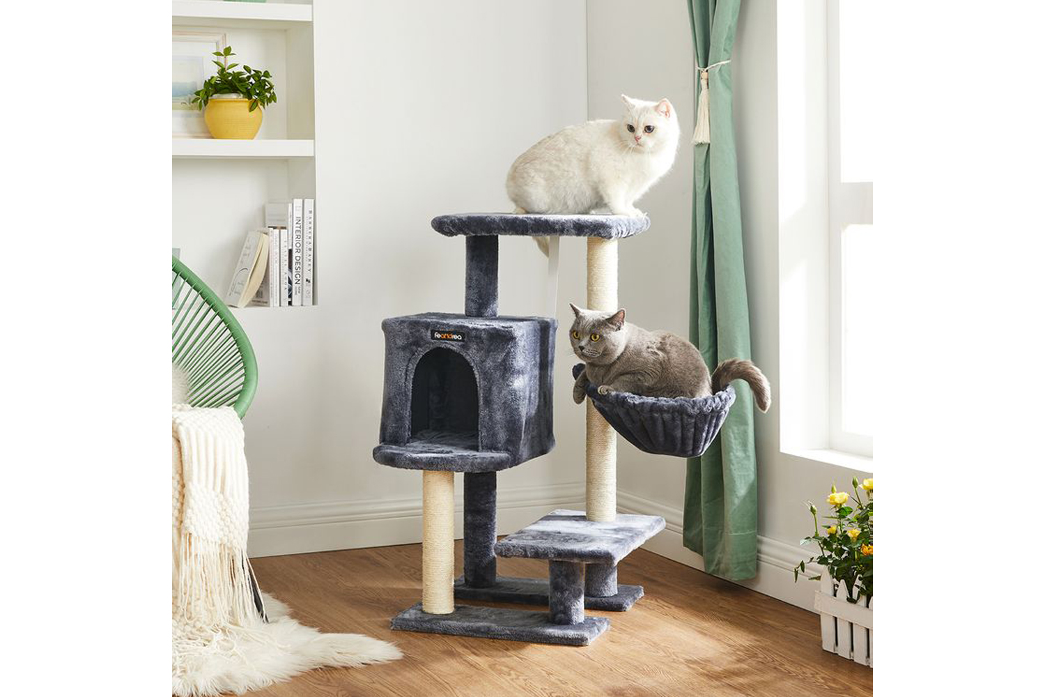 Take a sunbath in the soft basket, stretch a little bit on the fluffy top platform, curl up in the spacious cat cave for a sweet night’s sleep...your cat knows all the cozy spots!