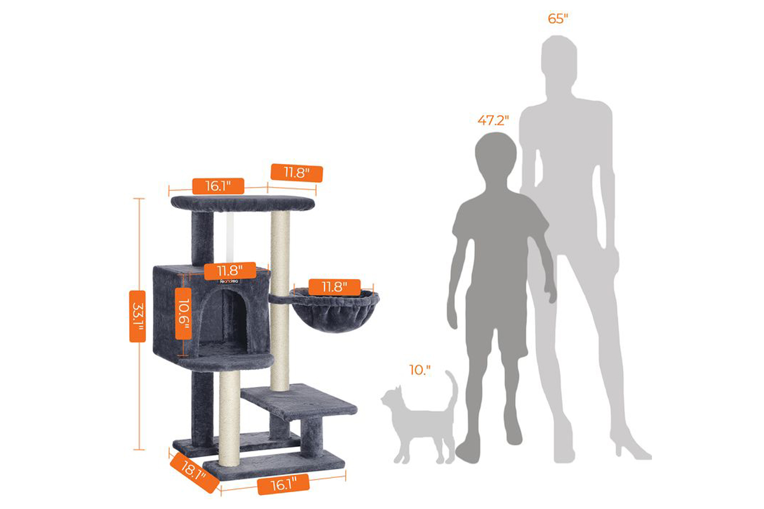 Living in a small space doesn’t mean you have to compromise your love for your cat. Taking up only 16.1” x 18.1”, this cat tree doesn’t eat up much floor space, but offers your cat endless joy, from climbing to scratching to relaxing