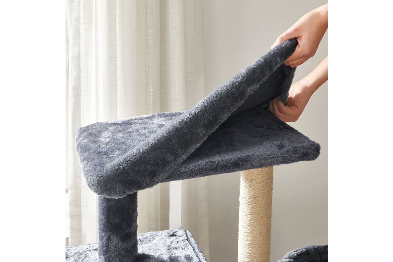The top perch of this cat tree is equipped with a removable plush cover for easy cleaning. Be it food stains or small accidents, just remove it and wash it—your little furball will thank you for that!