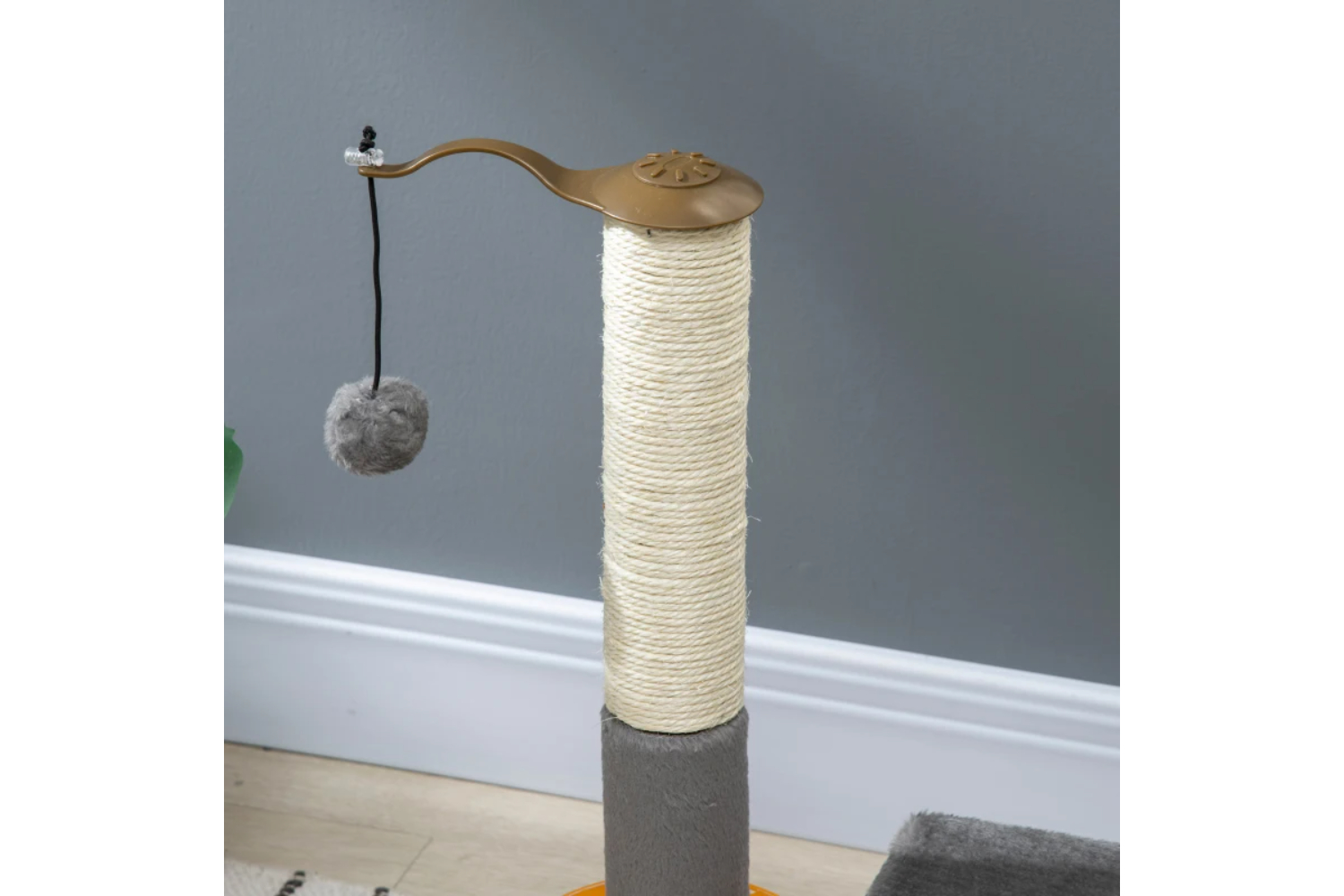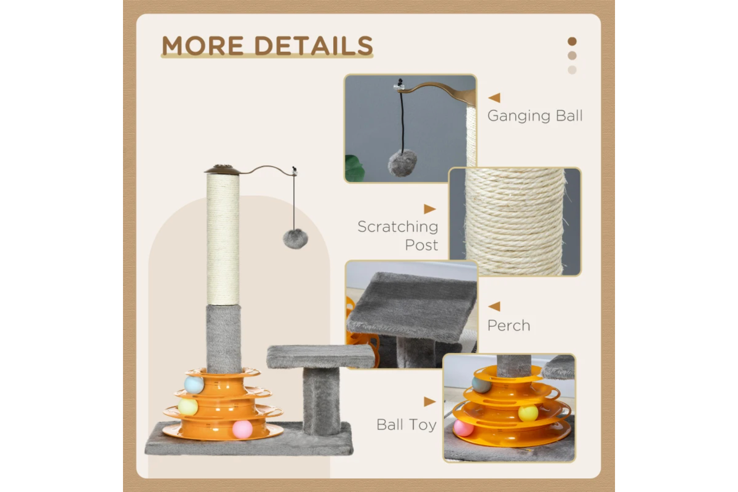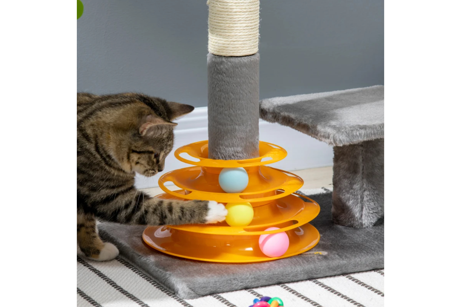 Satisfy your cat's natural instincts safely with this cat climbing tree from PawHut! This cat tree includes a sisal rope scratching post, a perch, a toy and a hanging ball toy for versatile play. Keep your furniture free of scratches and digs with this cat tower. Give your frisky felines a safe place to sharpen their claws on the cat activity center. From cat naps to play time, this cat tree gives your pets a place of their own to lounge, scratch and more.