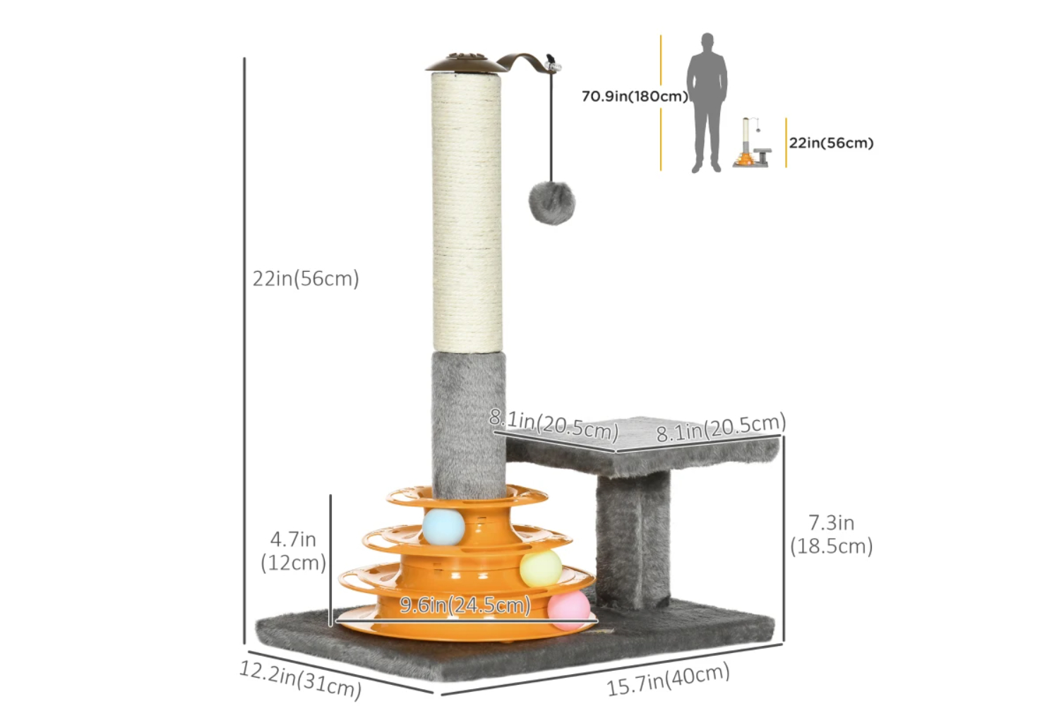 - Features all they need in one mini spot: A perch, scratching post and play ball