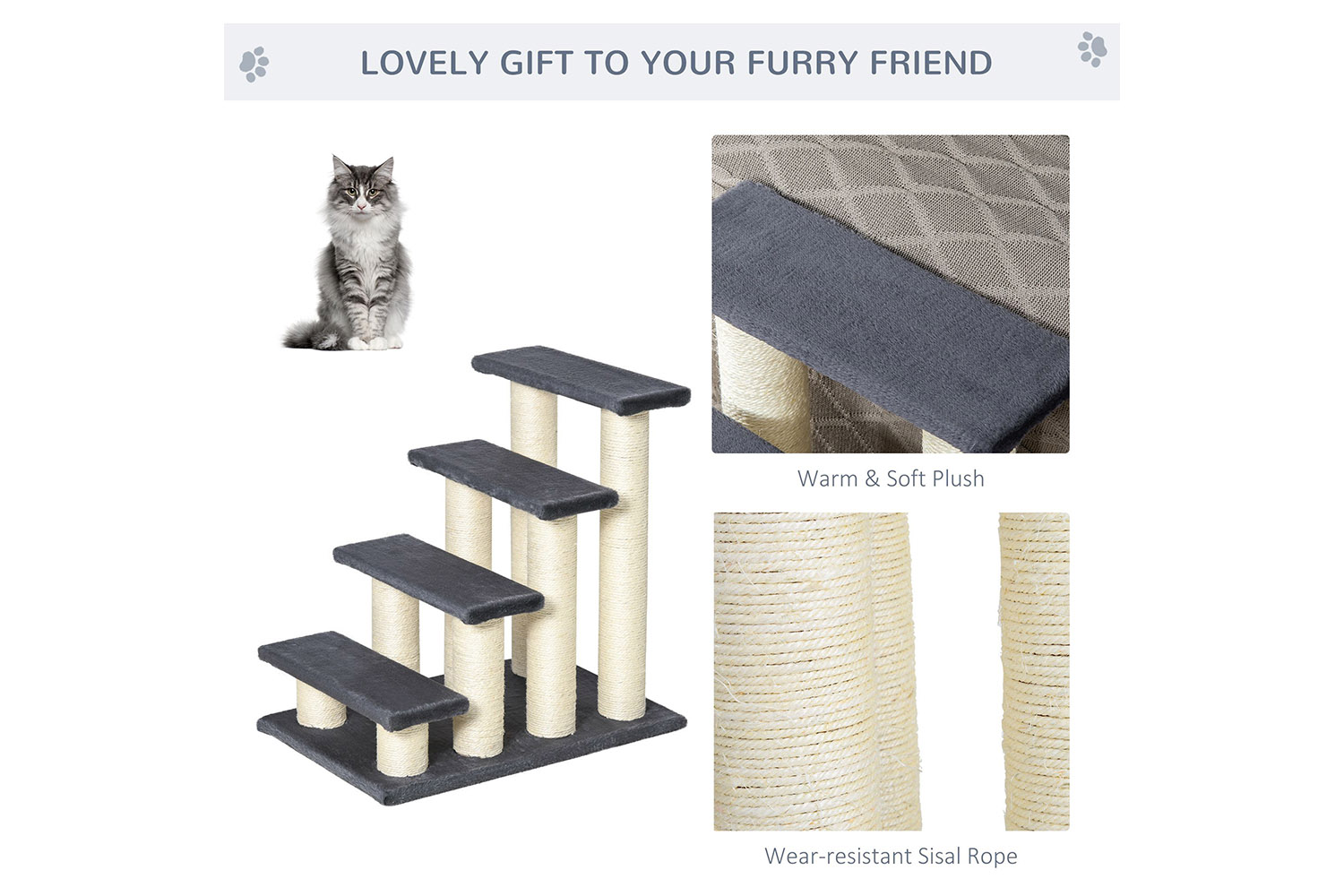PawHut D30-067 4 Step Pet Stair | Grey