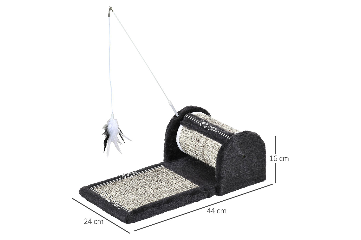 Treat your pet to this cat scratcher from PawHut. Covered in soft plush fabric, they'll have a cosy spot to rest and sleep, whilst the sisal rope material lets them scratch and sharpen their claws, so they're less likely to ruin your furniture – when they're feeling playful, they've got a hanging feathered toy to keep them entertained, especially when they're alone. It's a great way to add fun and comfort to their day-to-day life.