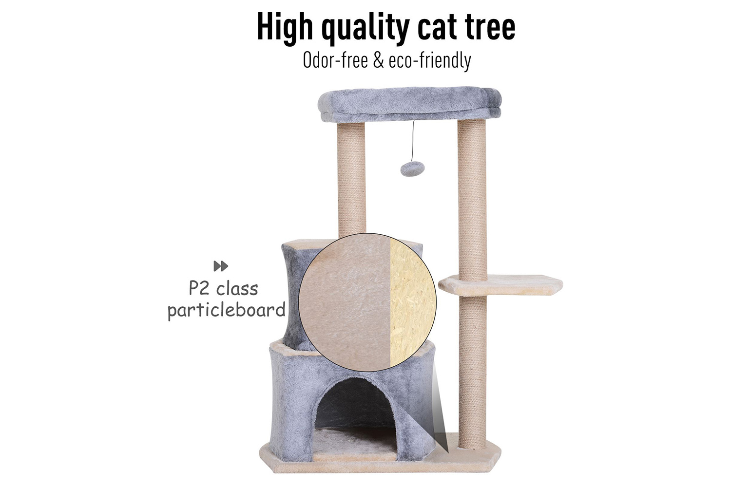 • Material: P2 class particleboard, short plush, sisal