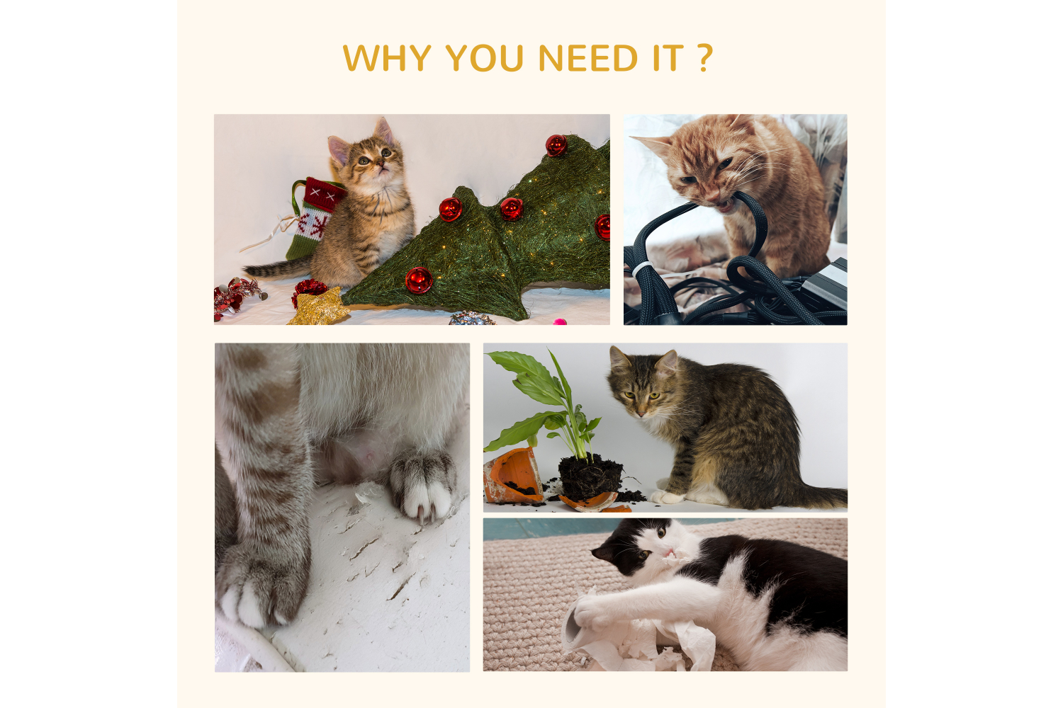• Scratching posts let cats dig and sharpen their claws, digging them out from using furniture