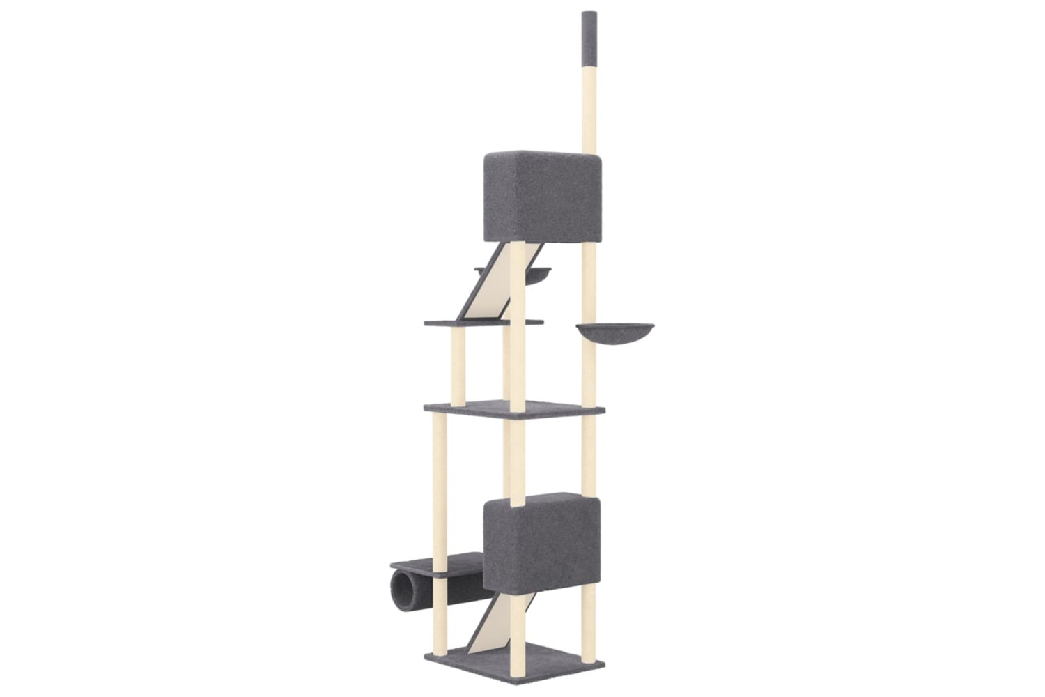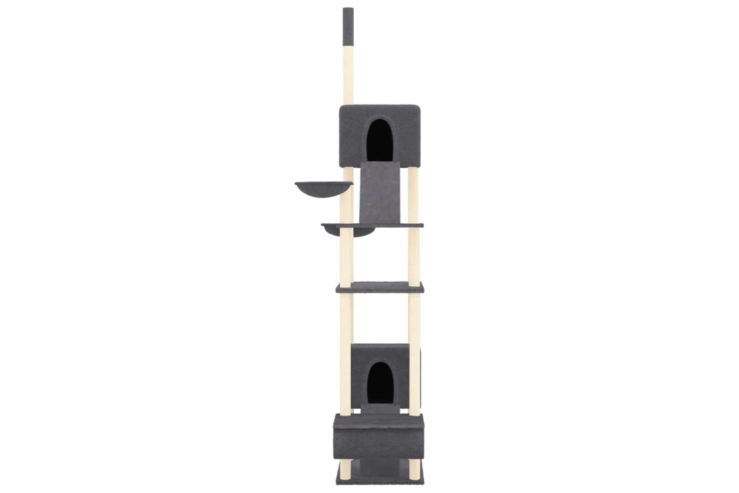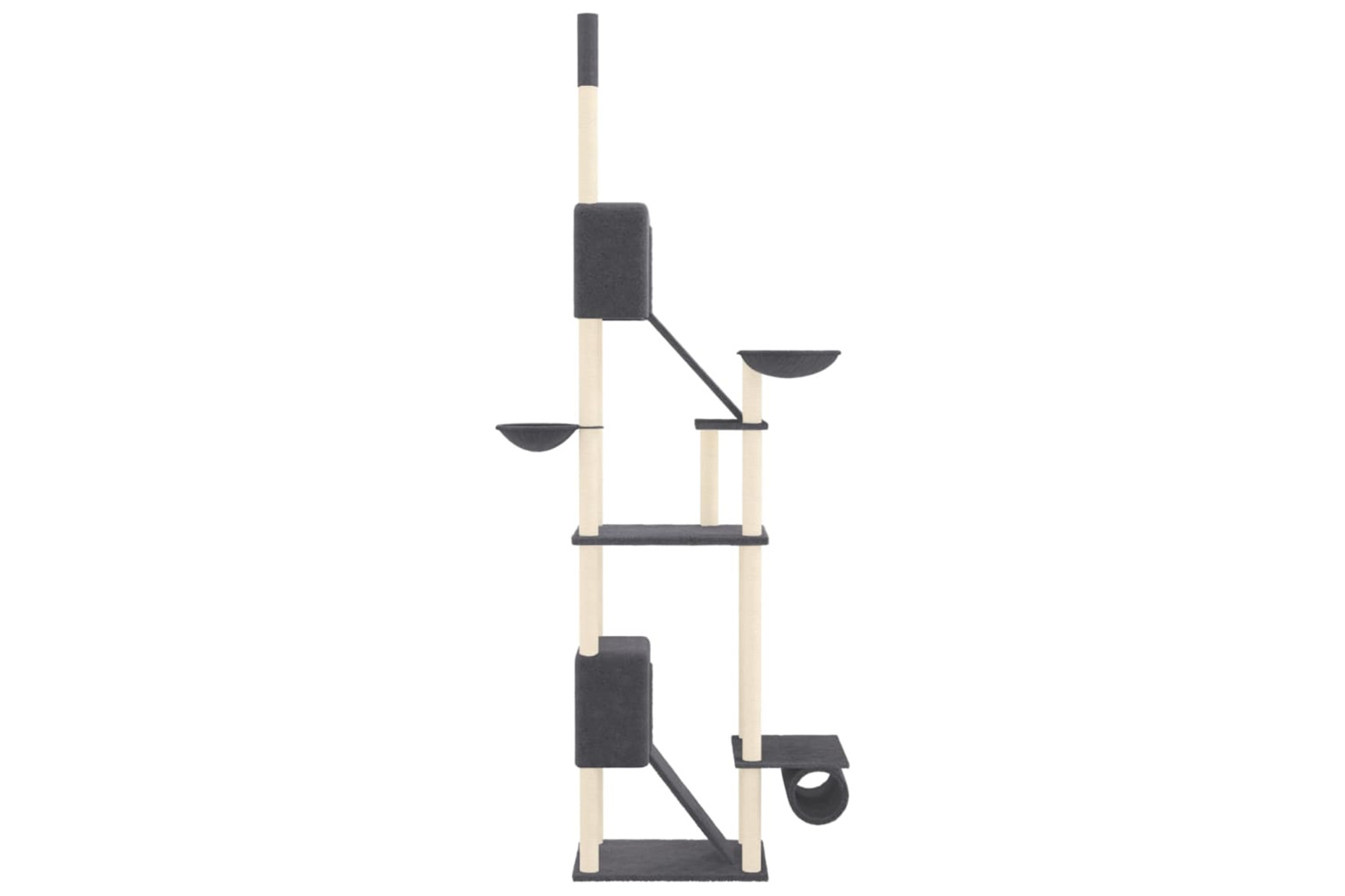 - Practical design: With the adjustable post, the cat activity centre can be attached to the ceiling, and its height can be adjusted from 277 to 303 cm.