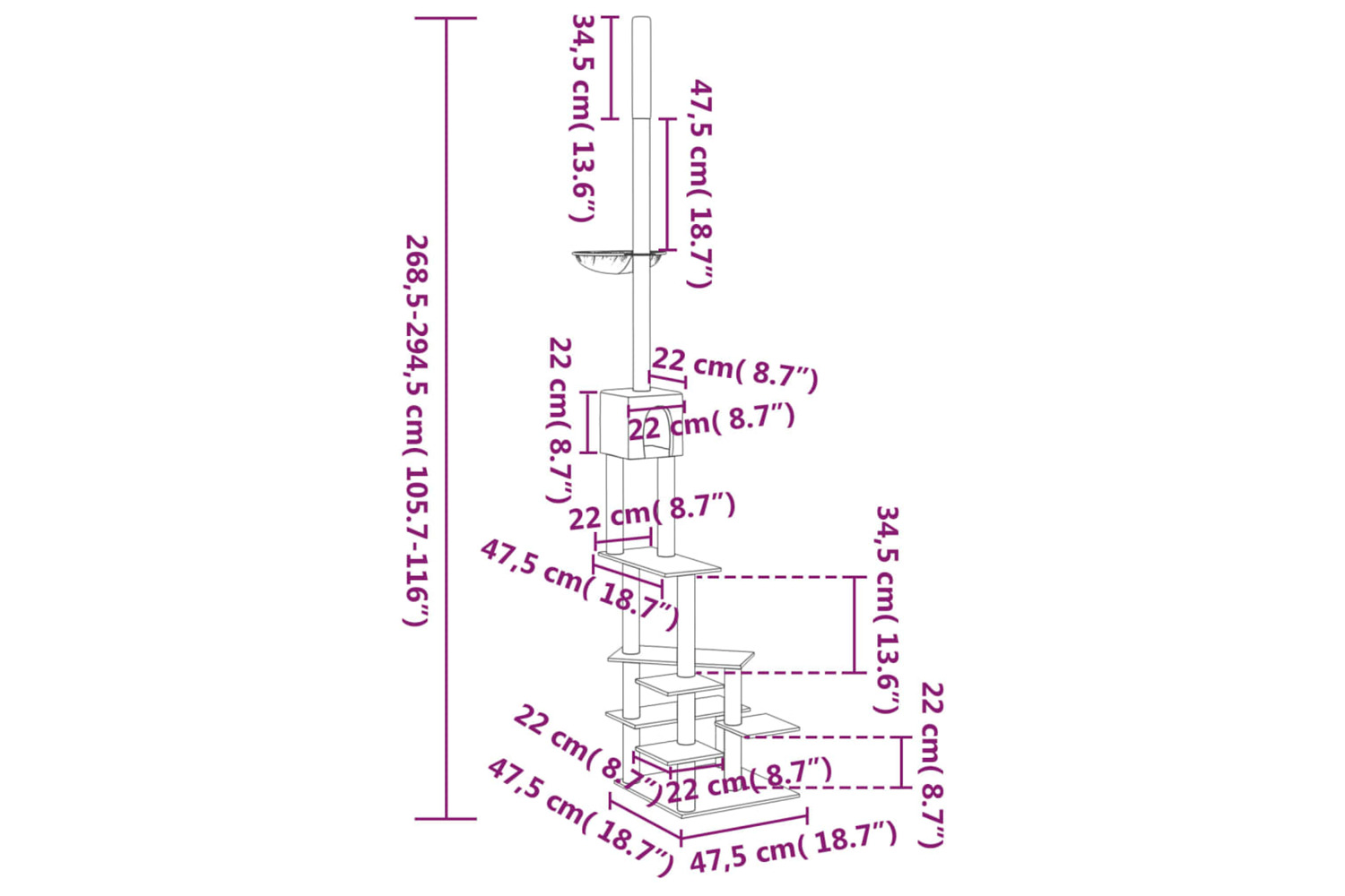- Practical design: With the adjustable post, the cat activity centre can be attached to the ceiling, and its height can be adjusted from 268,5 to 294,5 cm.