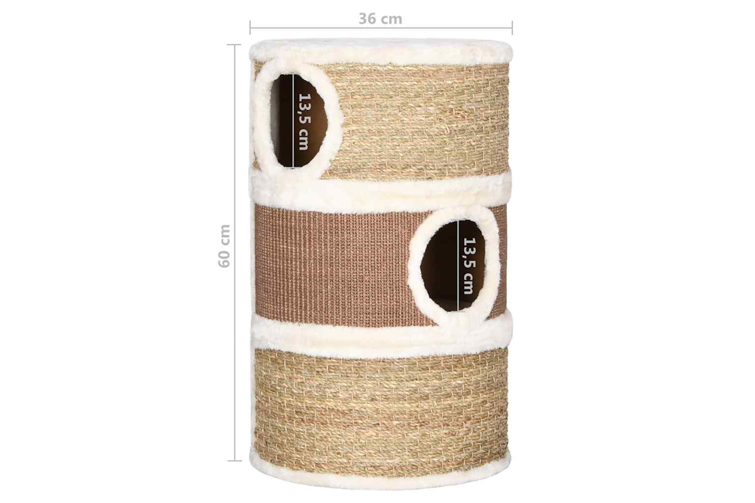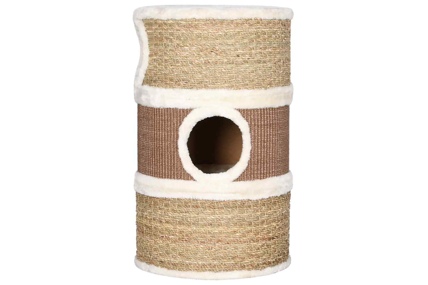 The roomy barrel is particularly suited to large cat breeds. It provides enough space for your cats to hide away, perch, climb and also relax. This barrel includes 3 large openings for easy access to the higher level. The seagrass coverage allows your cats to sharpen their claws and protects your furniture from damage. The soft plush on the inside provides the ultimate comfort for your furry friends.