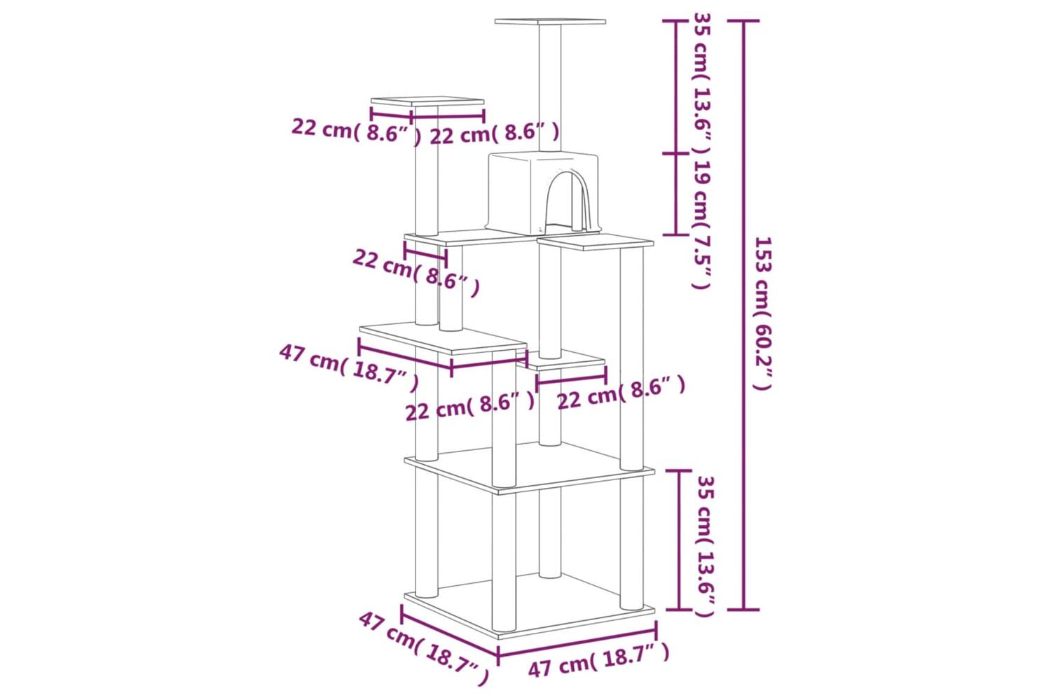 - Dimensions: 47 x 47 x 153 cm (L x W x H)