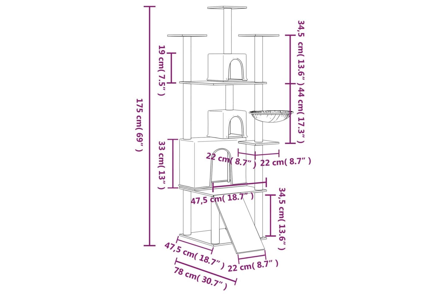 - All-in-one cat tower: The multi-level cat furniture is designed with 3 houses, 1 hammock, 1 ladder and platforms, providing a perfect place for your cats to climb, perch, scratch, hide, and also relax.