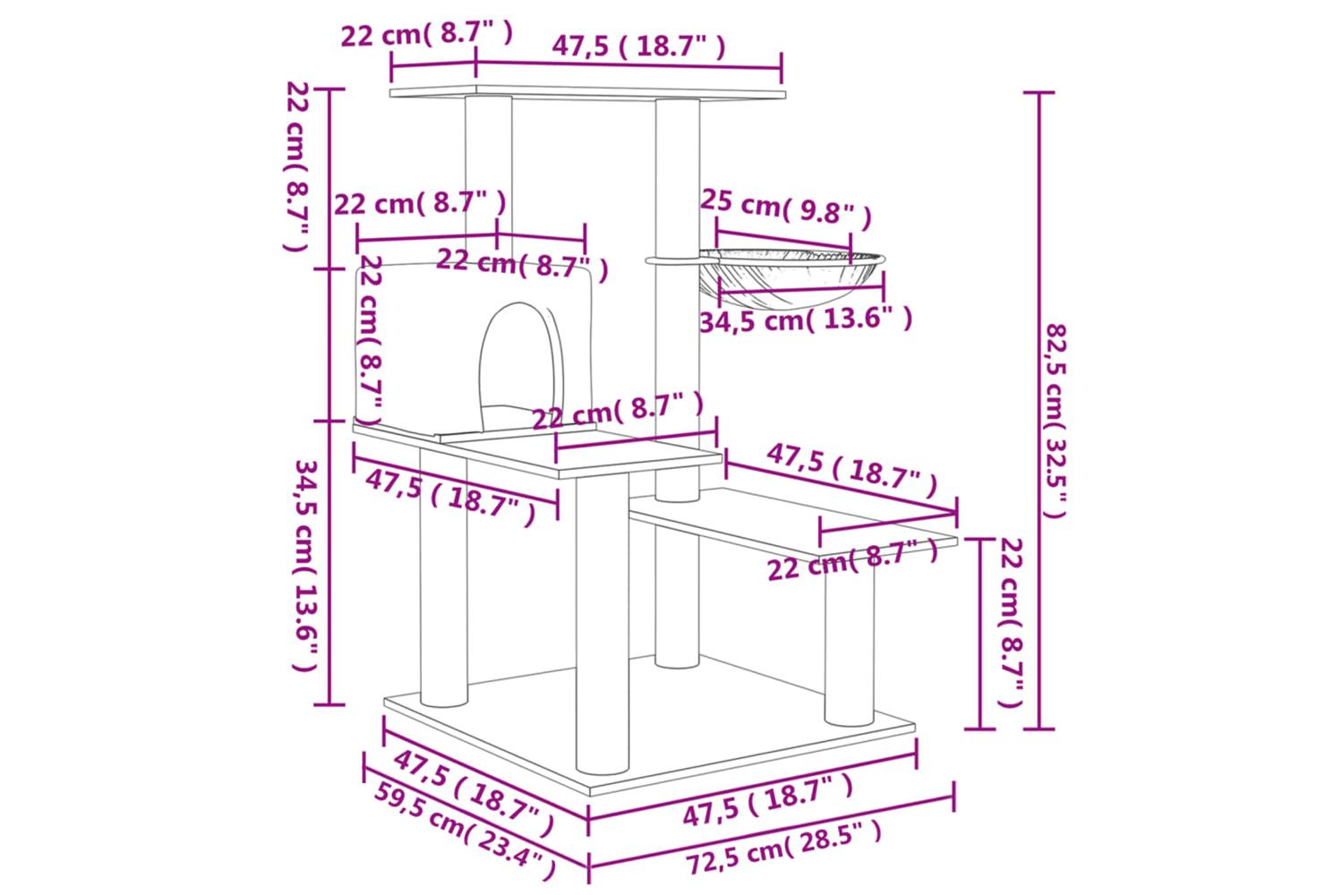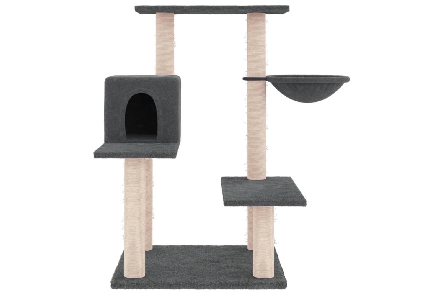- Natural sisal posts: The resilient and strong natural sisal posts of the cat scratching tree are perfect for your beloved cats to satisfy their scratching instinct and prevent them from scratching your furniture.