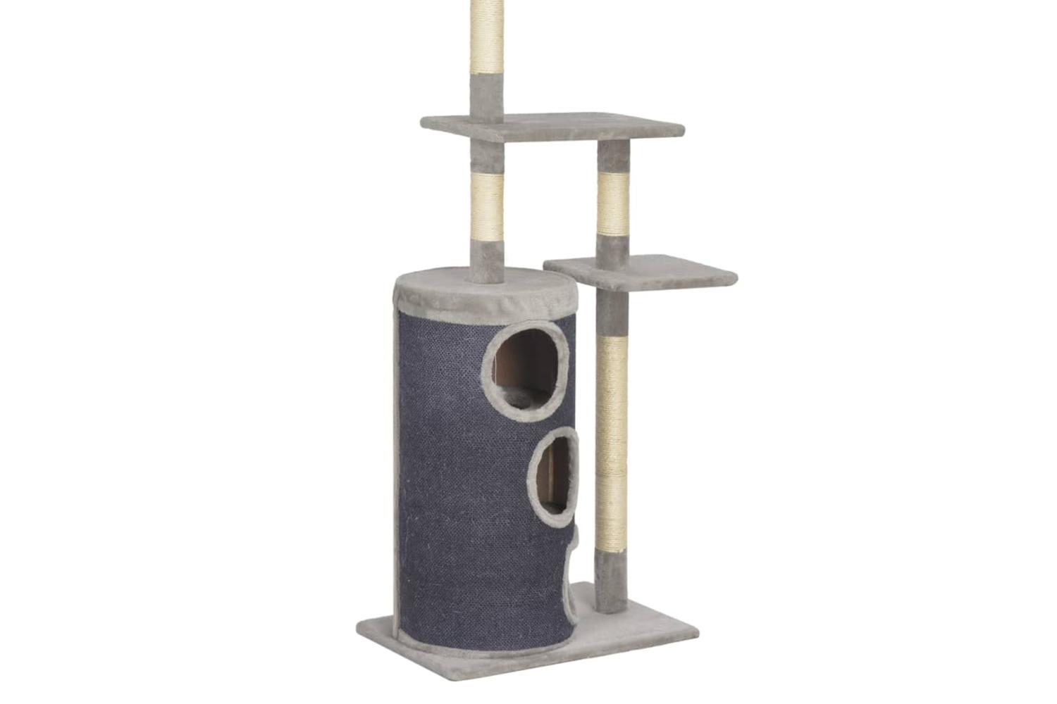 Your feline friends can sharpen their claws on the scratching posts wrapped in sisal rope, which provides a healthy outlet for their scratching instincts. They will also enjoy chasing after each other while jumping up and down this fun play centre. In the house, there is a dangling toy that will engage your curious cats. When they've had enough playtime fun, your little friends will love resting on the upper platforms where they have a better view. They can also hide in the cosy houses to take a nap, or take a load off on the comfy baskets.