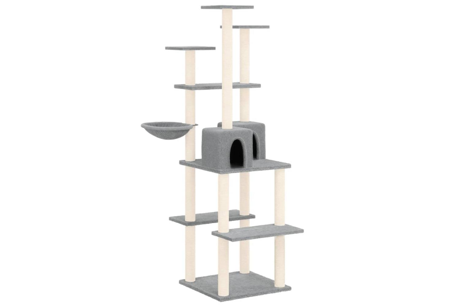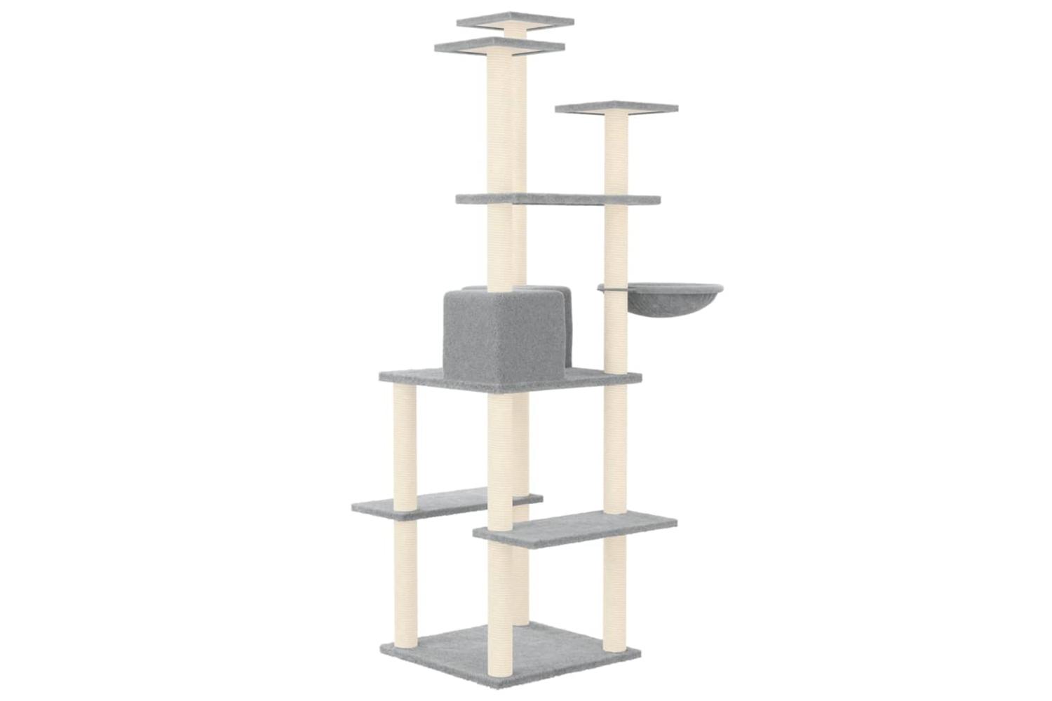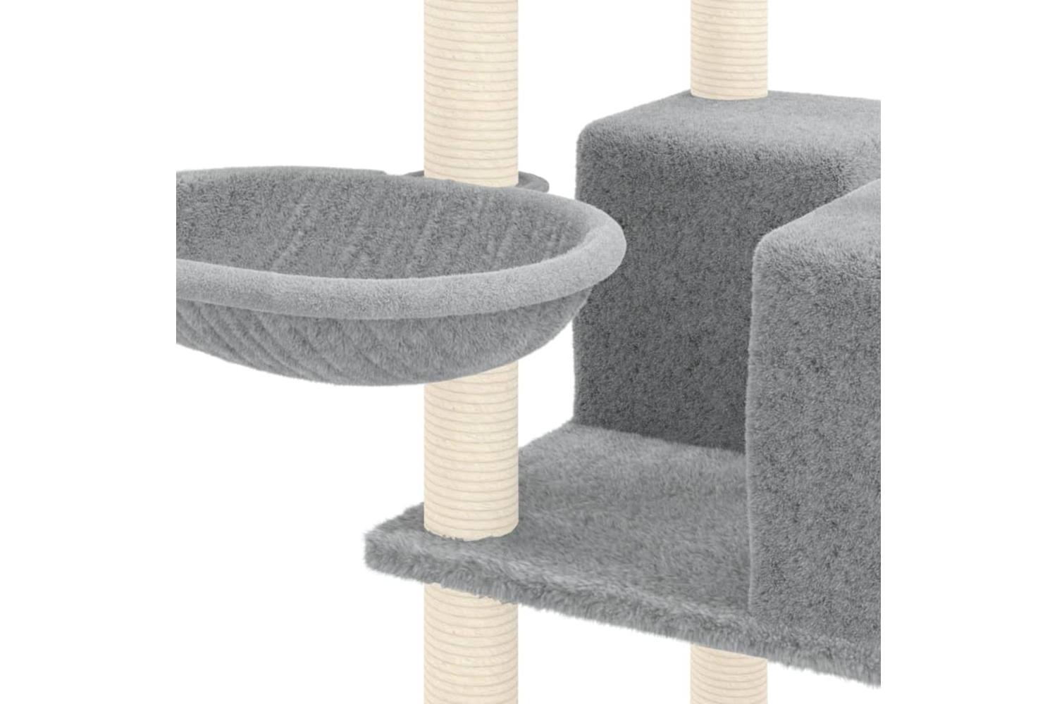 - Durable sisal posts: The resilient and strong natural sisal posts of the cat scratching tree are perfect for your beloved cats to satisfy their scratching instinct and prevent them from scratching your furniture.
