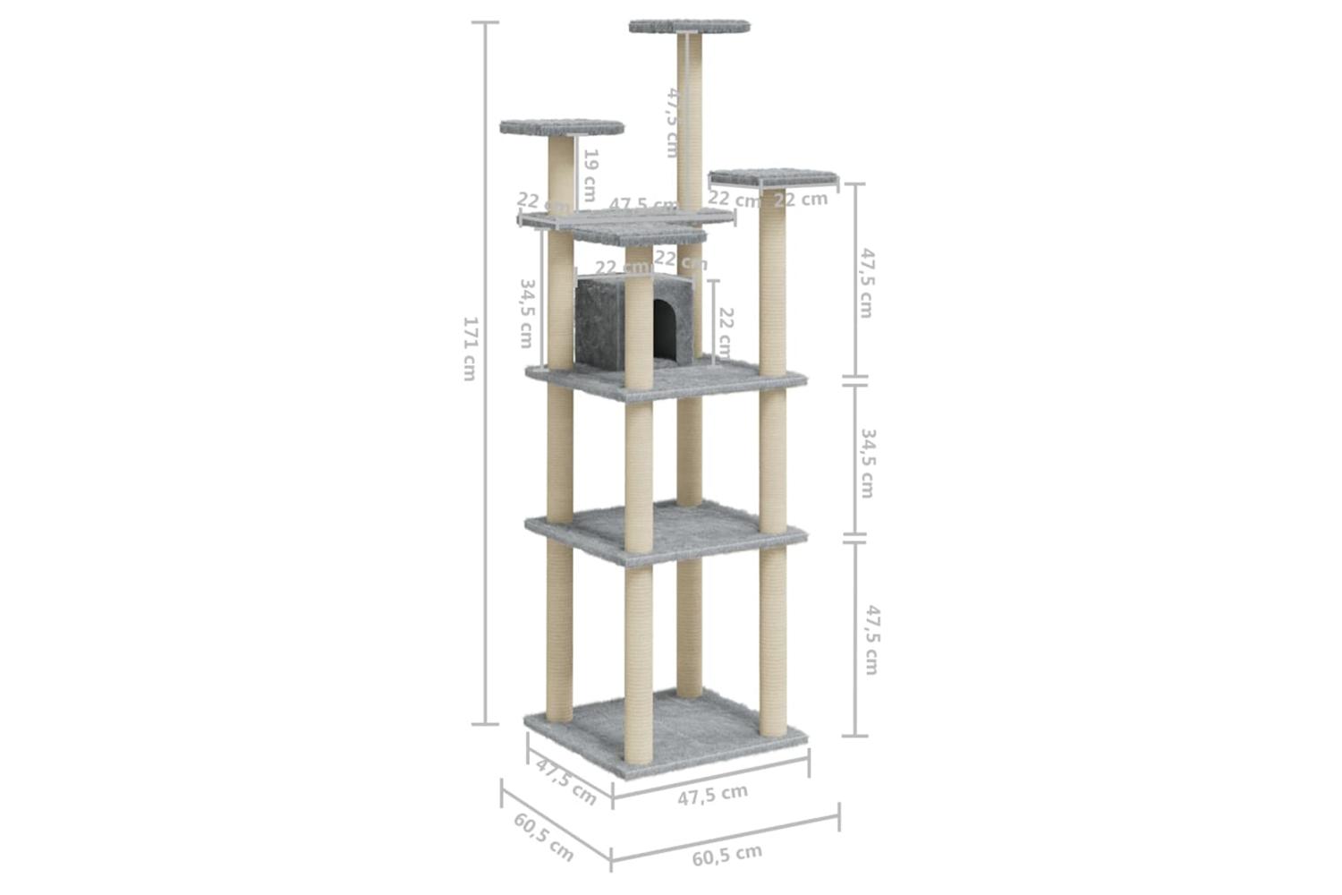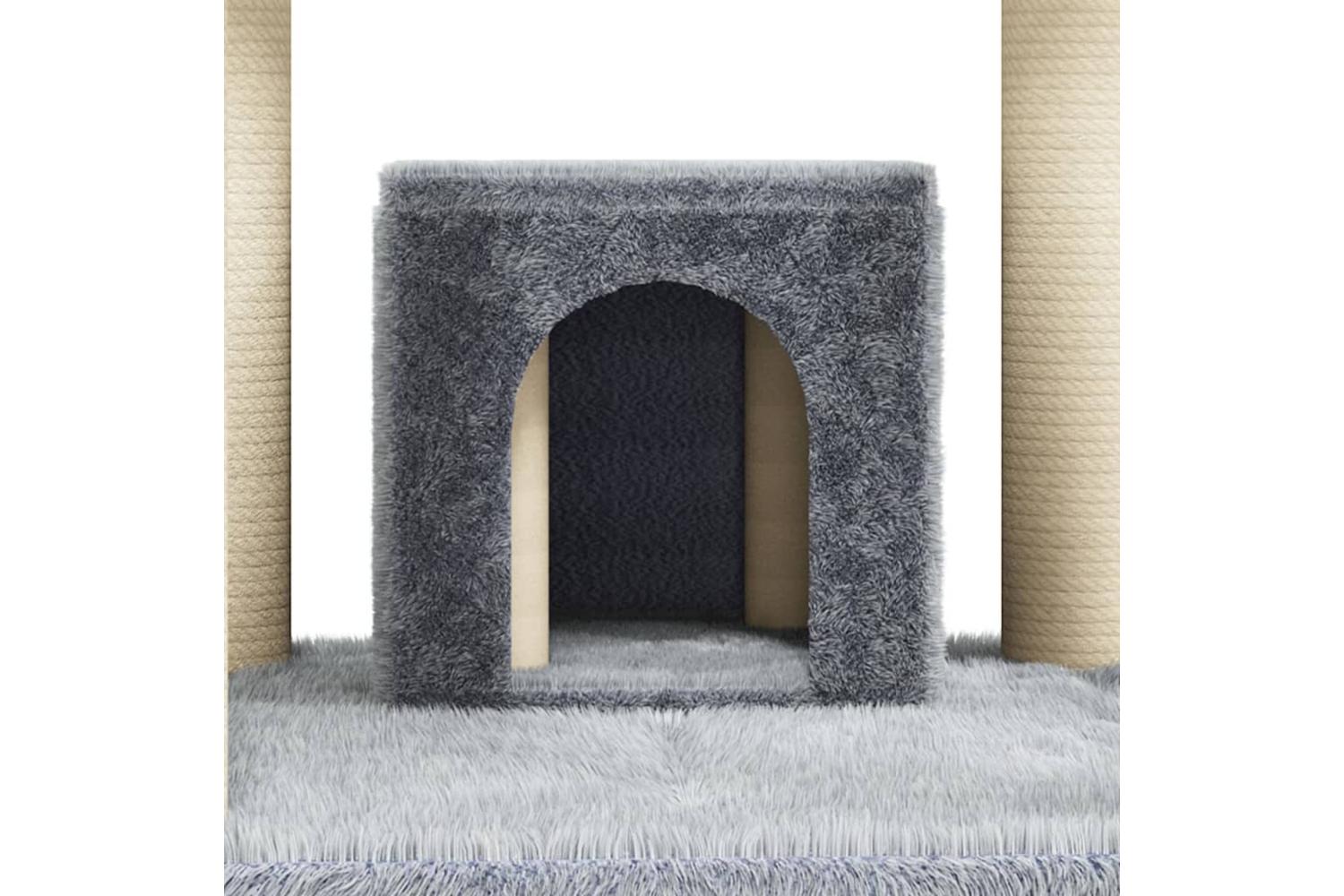 Your furry friends can sharpen their claws on the scratching posts wrapped in sisal rope, which provides a healthy outlet for their scratching instincts. Additionally, they will also rejoice in chasing after each other while jumping up and down this fun play centre. When they've enjoyed enough playtime, your little friends will love resting on the upper platforms where they have a better view. Besides, they can also hide in the cosy house to take a nap, or take a load off on the comfortable plush seat.