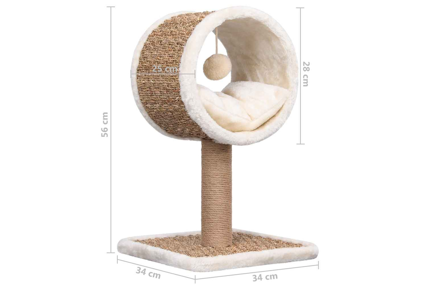 The cat scratching tree also gives your tiny friends the chance to stretch and exercise, especially in the cold winter months when they are stuck indoors. The scratch poles are wrapped in seagrass, which is exceedingly comfortable for your feline friends to sharpen their claws. It also has a hanging toy and top lounge tunnel to keep your little friend entertained. The base is sturdy and stable.