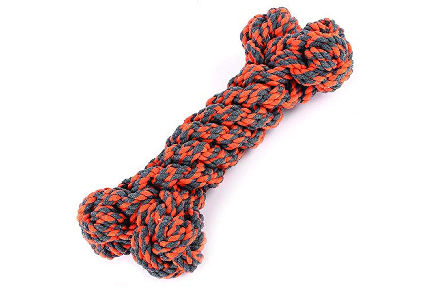 This versatile dog toy is ideal for playing fetch and chewing. Shaped like a bone, it gives your dog a comforting feel, satisfying their urge to hide hunger. Made from heavy-duty material, this toy is extremely durable and long-lasting. It is excellent for aiding your dog's gums and teeth.