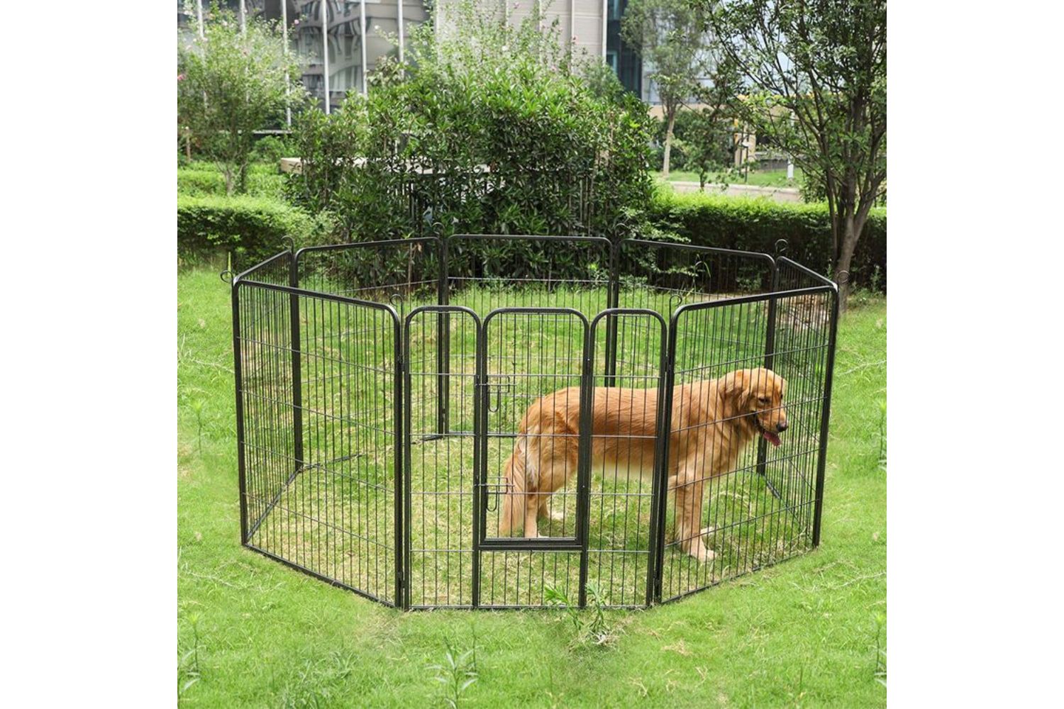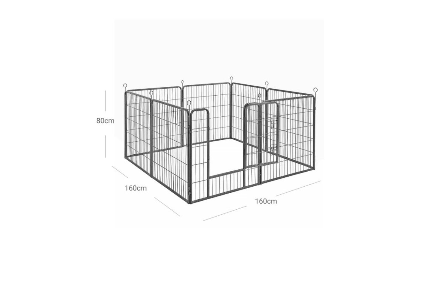 The puppy run made of 8 elements, each 77 x 80 cm (W x H) can be flexibly combined with each other, so you can get a large enclosure.