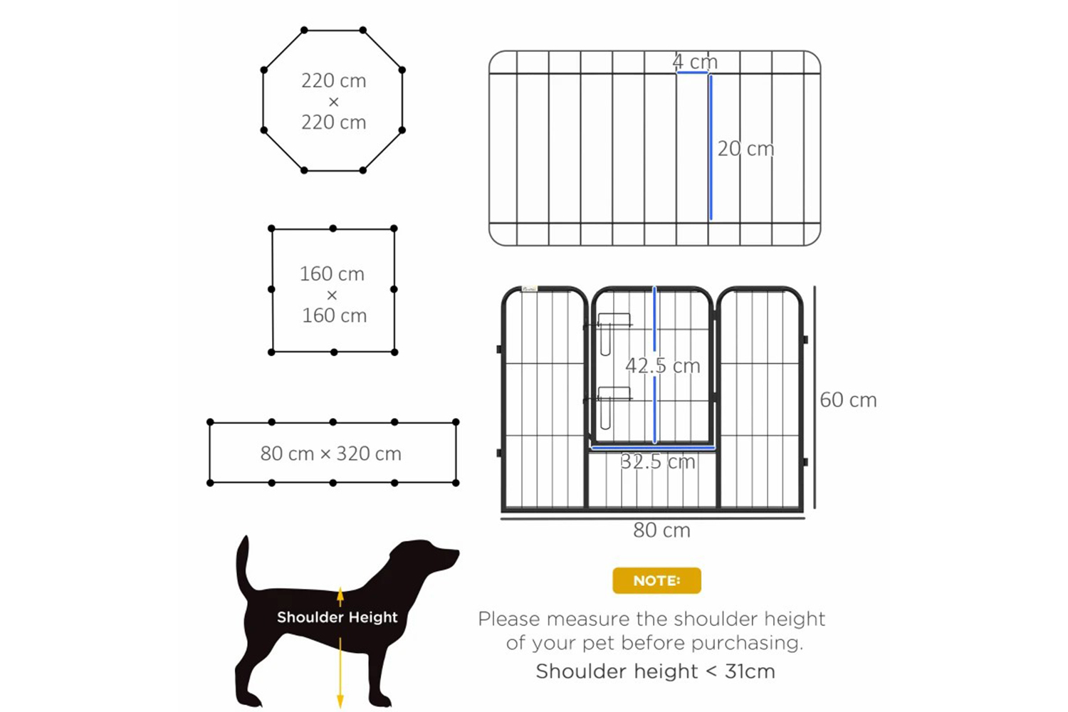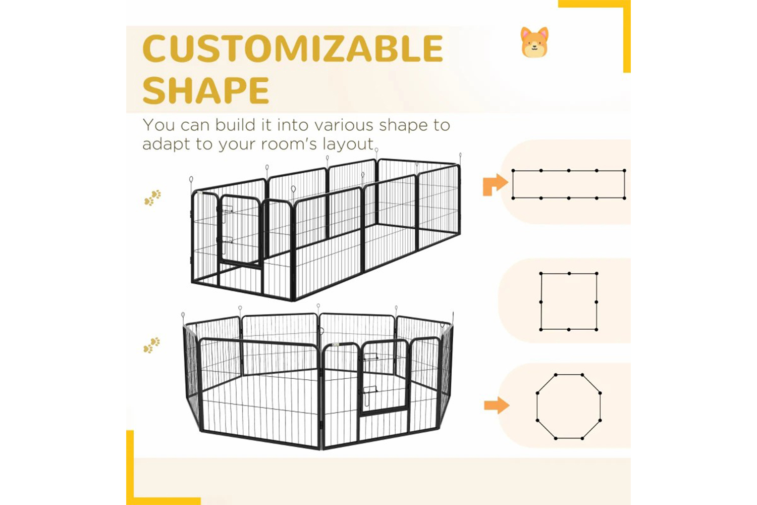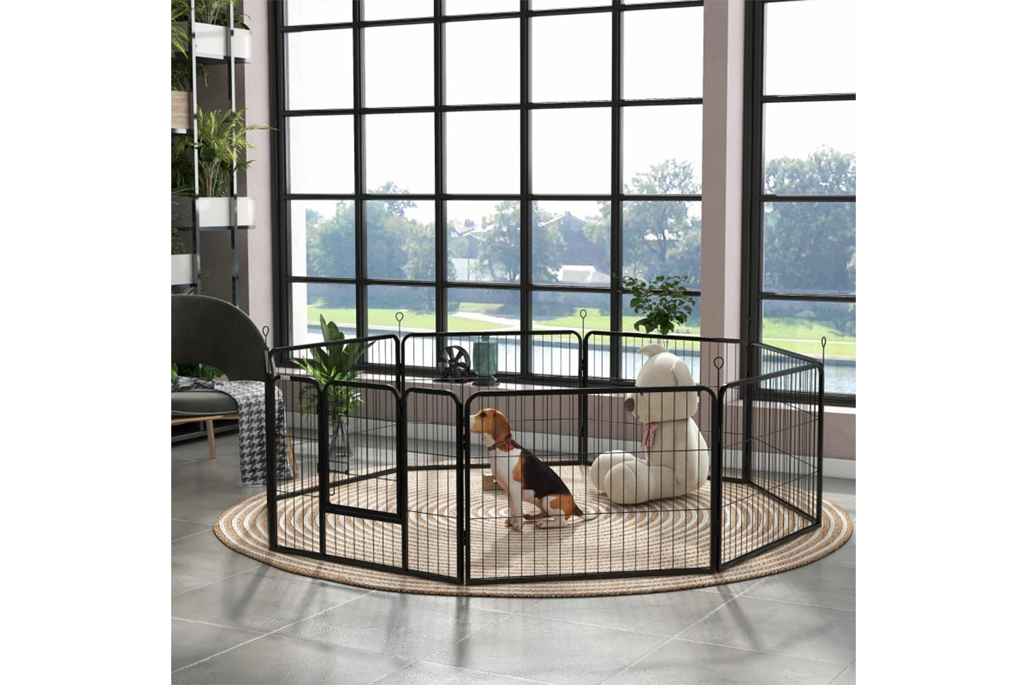 With this PawHut dog play pen, pets have a safe space to be themselves, whilst giving you peace of mind. With 8 panels, it's flexible and spacious, providing lots of room to roam, play and relax – pets won't feel boxed in. Features ground stakes that go into the ground for stability, you'll set this playpen into different shapes to fit your layout, whether it's inside or outside. For pets, it's freedom and security, and for you, it's knowing they're safe and sound, with lots of space to enjoy.