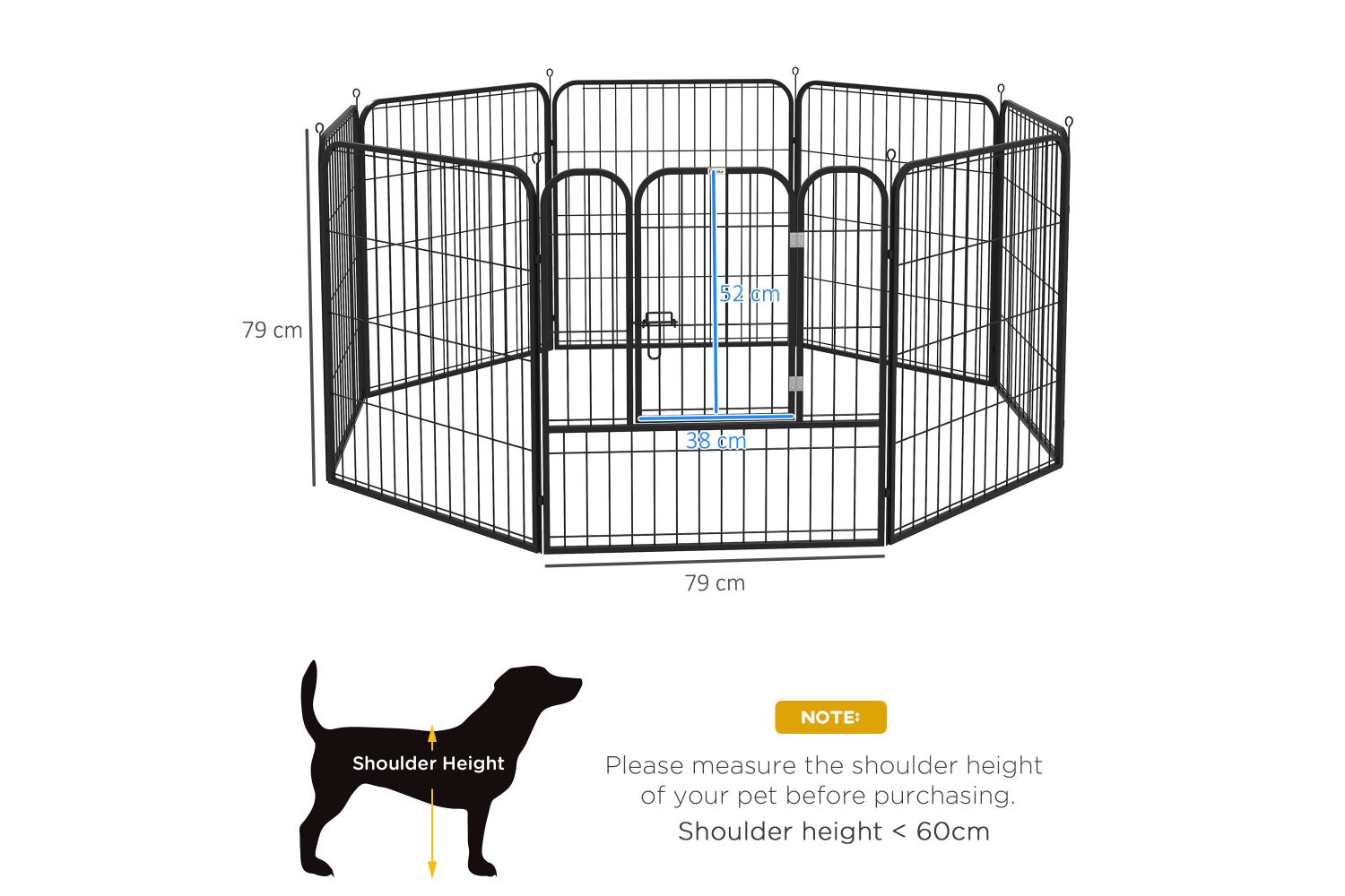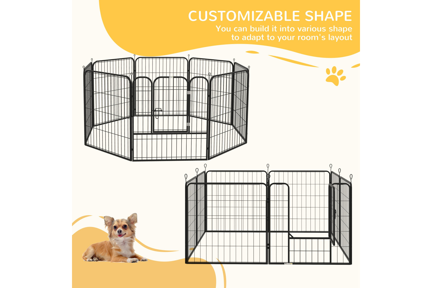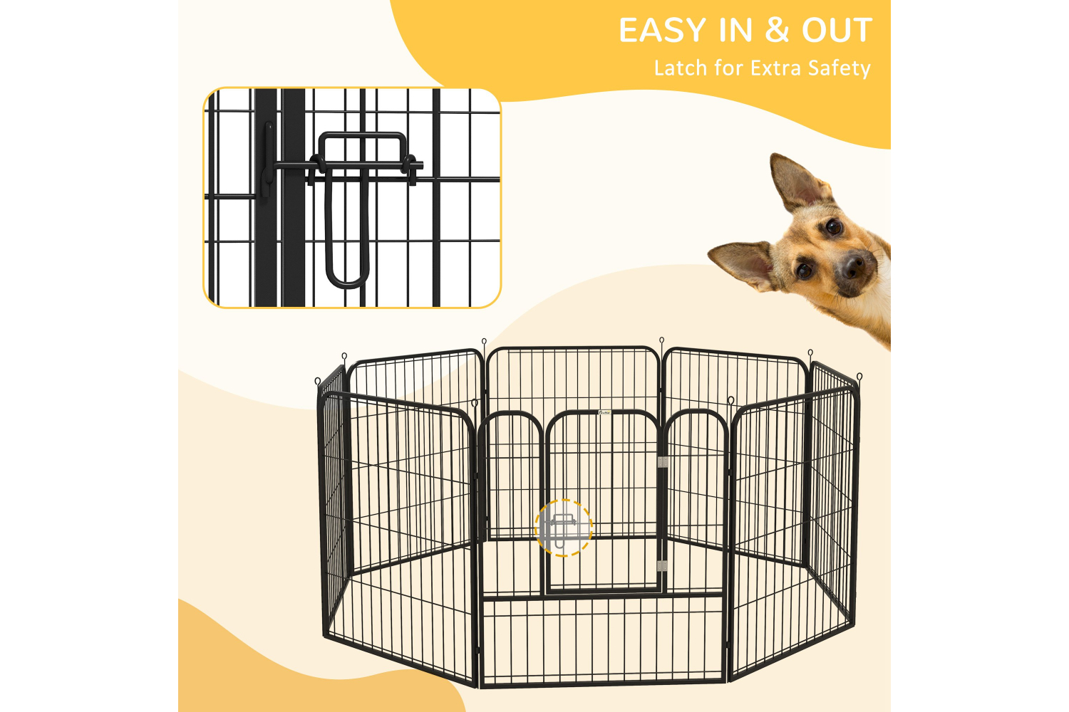 This playpen from PawHut will house your dog safely and without them feeling trapped. Comes with eight pins so it's easy to set up and takedown - perfect for storing or taking with you where required. You can build it into various shapes to adapt to your room's layout. It comes with a hinged door for easy access in and out, with double latches for safely. This pet playpen can be used both indoor and outdoor. Give your pet a fuss-free temporary home with this playpen!