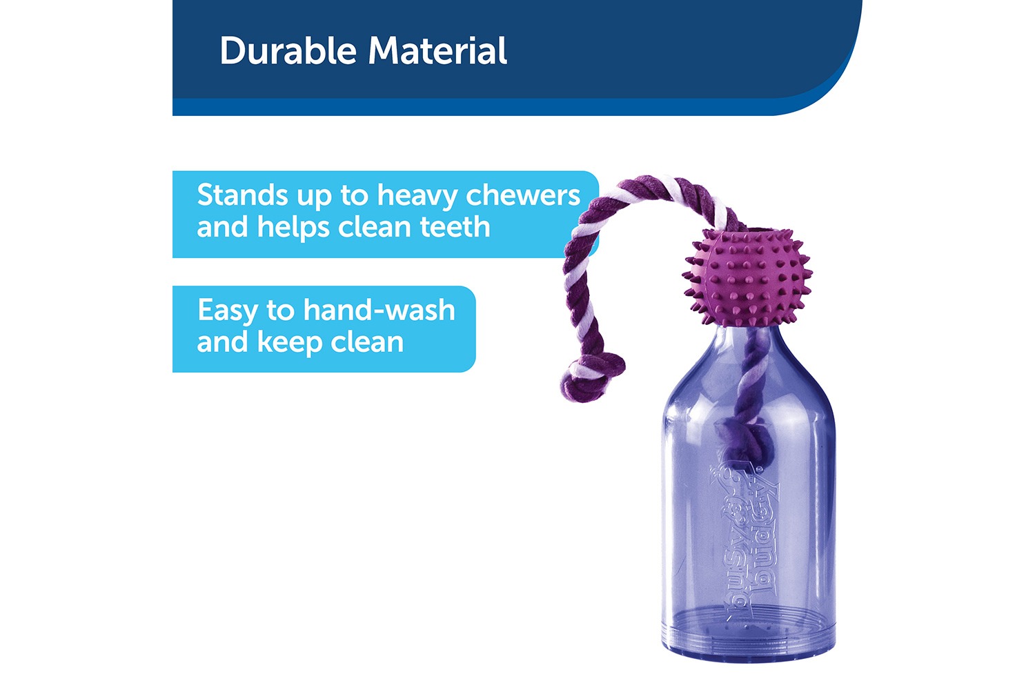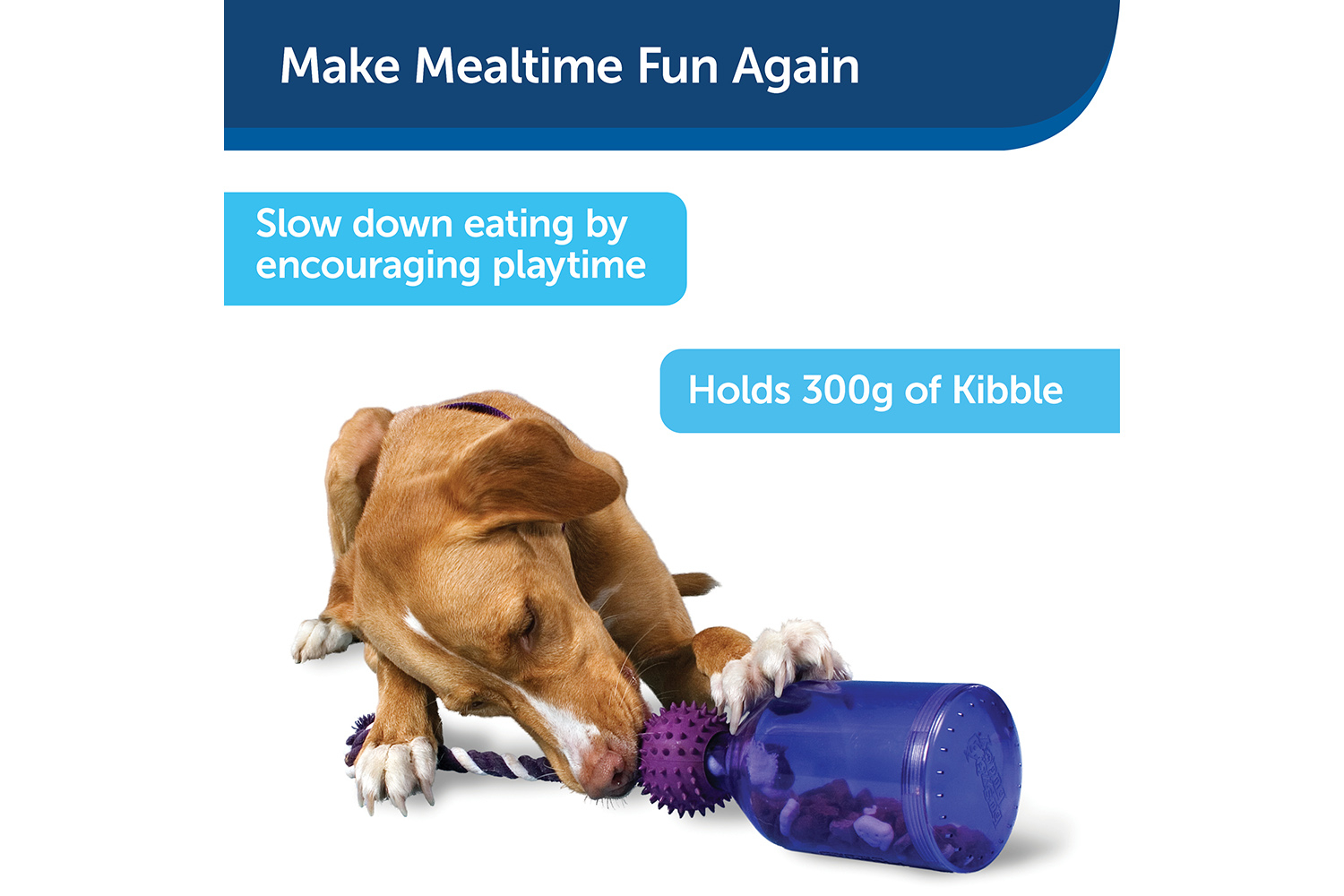 Slow feeder and trainer – Use to regulate meals, play games or teach training commands; holds up to 828 mL of kibble Reduces Boredom. Durable plastic jug keeps your pup busy; braided rope is great for tug-of-war and helping to keep teeth clean Interactive. Treat Dispenser – Our patented Treat Meter dispenses treats randomly while your dog plays with the toy; trim the prongs to make dry treats come out faster. Easy to Clean – Dishwasher-safe; use top rack for best results. Three sizes available – Extra small for pups under five kilograms; small for dogs 5–18 kilograms; medium/large for pooches over 18 kilograms.