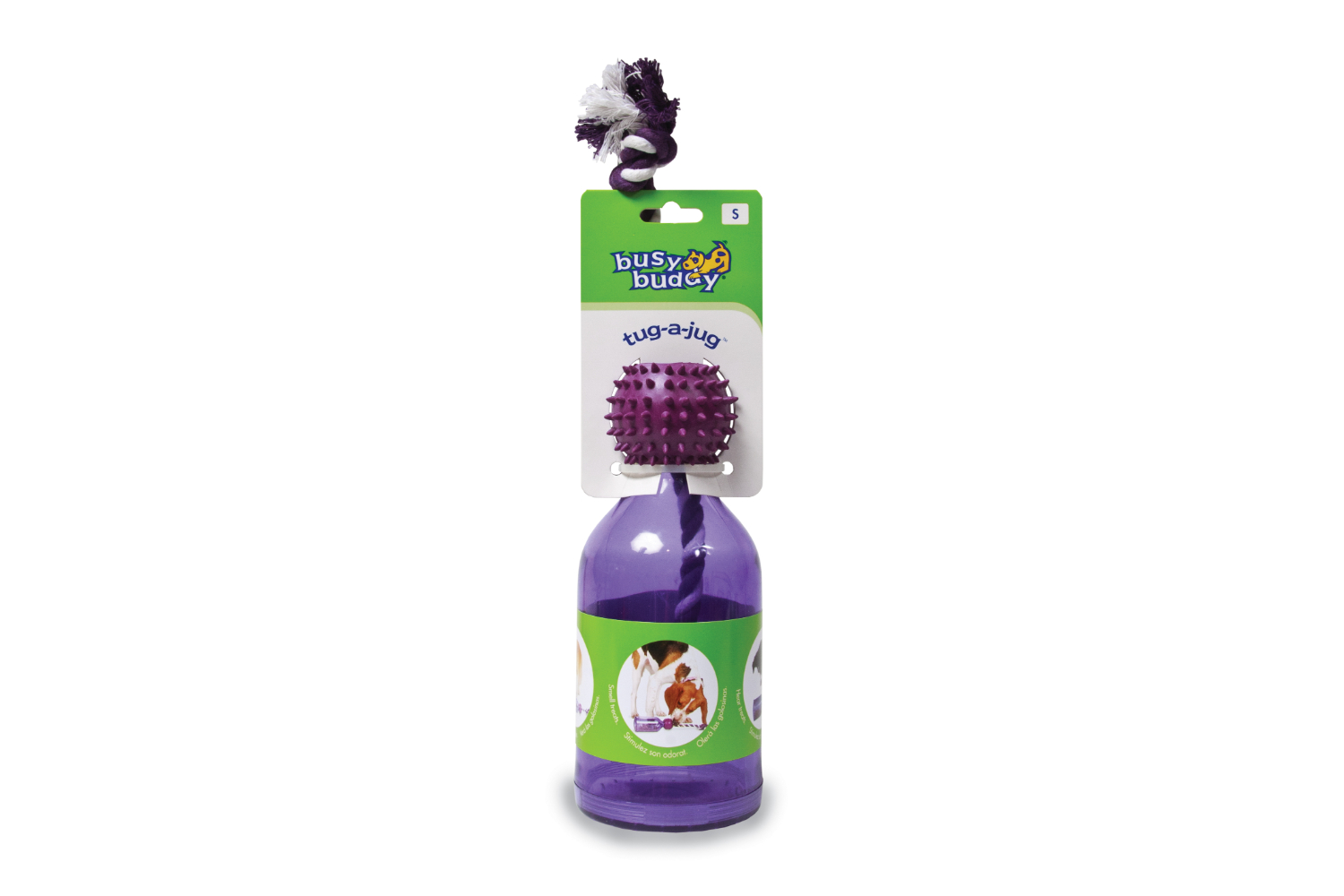 If your pet needs a multi-purpose toy to keep them extra-busy, treat them to a PetSafe Busy Buddy Tug-A-Jug. This durable plastic jug randomly dispenses treats and holds up to super-strong chewers. The braided rope is great for playing tug-of-war and the jug can double as a slow feeder for pets who eat too fast. Our patented Treat Meter dispenses treats randomly while your dog plays with the toy. Trim the prongs to make treats come out faster. Available in extra small, small and medium/large. Trust PetSafe to help to keep your pet healthy, safe and happy.