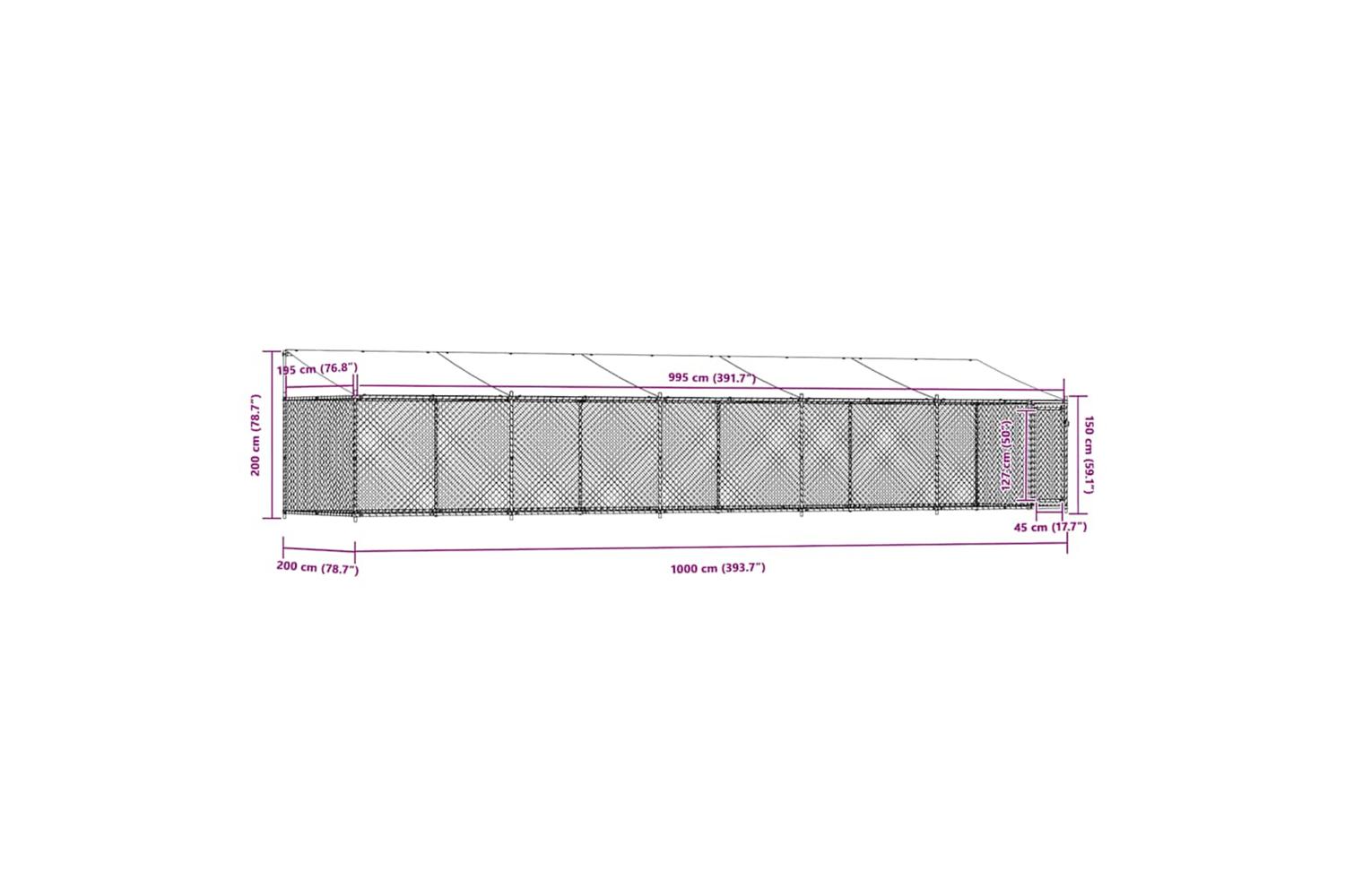 - Inner dimensions: 9.95 x 1.95 x 1.95 m (L x W x H)