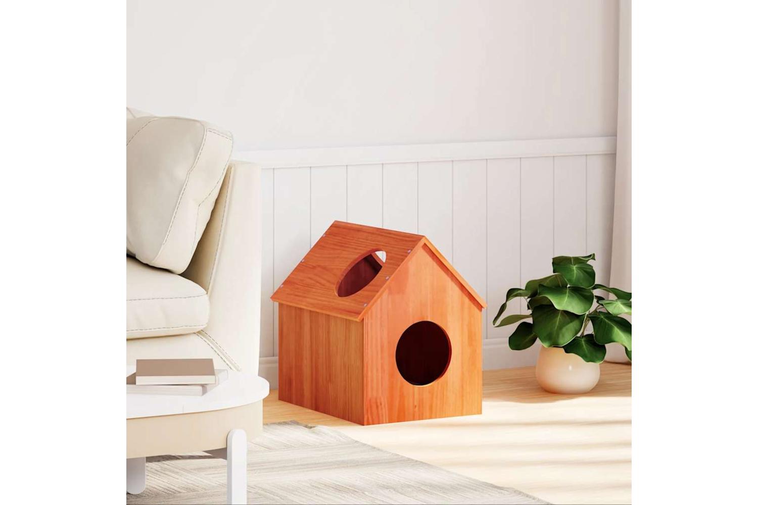 This wooden cat house is designed to provide your cat with a private space for sleeping and playing.